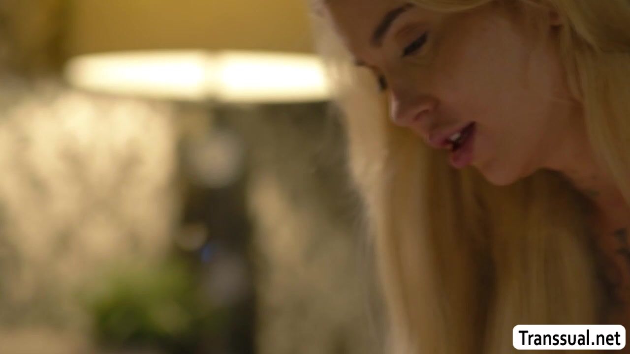Hot Trans Gracie Jane and Roman Todd are on the bed kissing each other.After that,Gracie throats Roman big cock passionately and in return,Roman bareback fucks her tight wet ass so deep and hard.