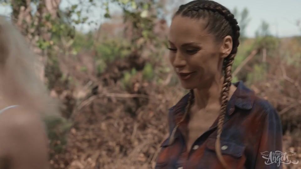 Slender Girl Camping With Blonde Shemale
