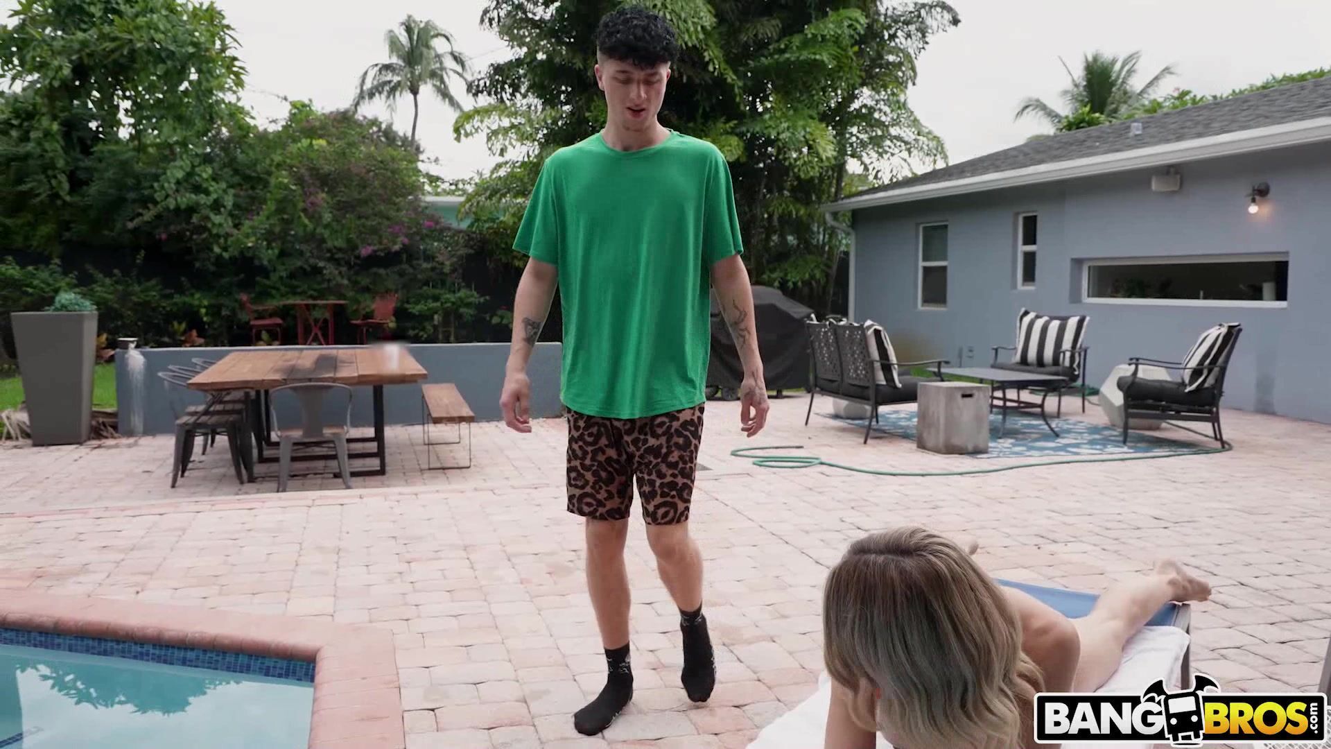 Stepmom asks me creampie her at the poolside