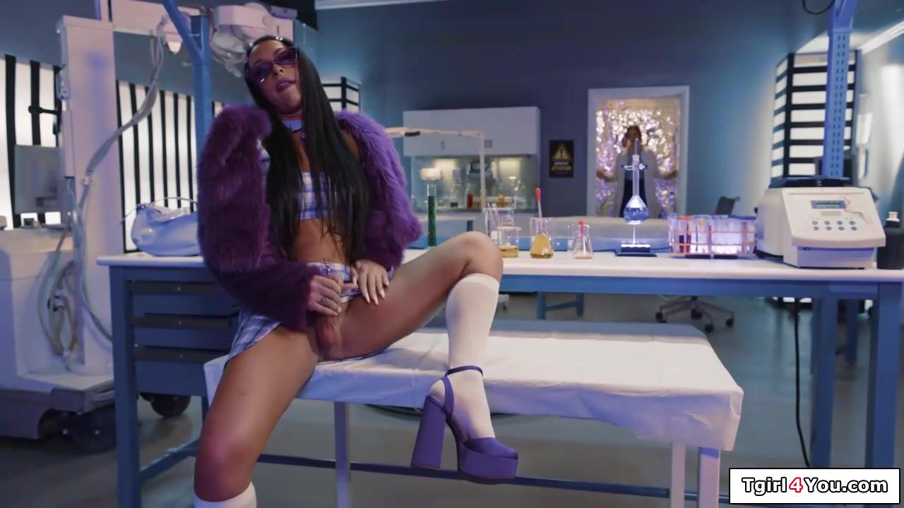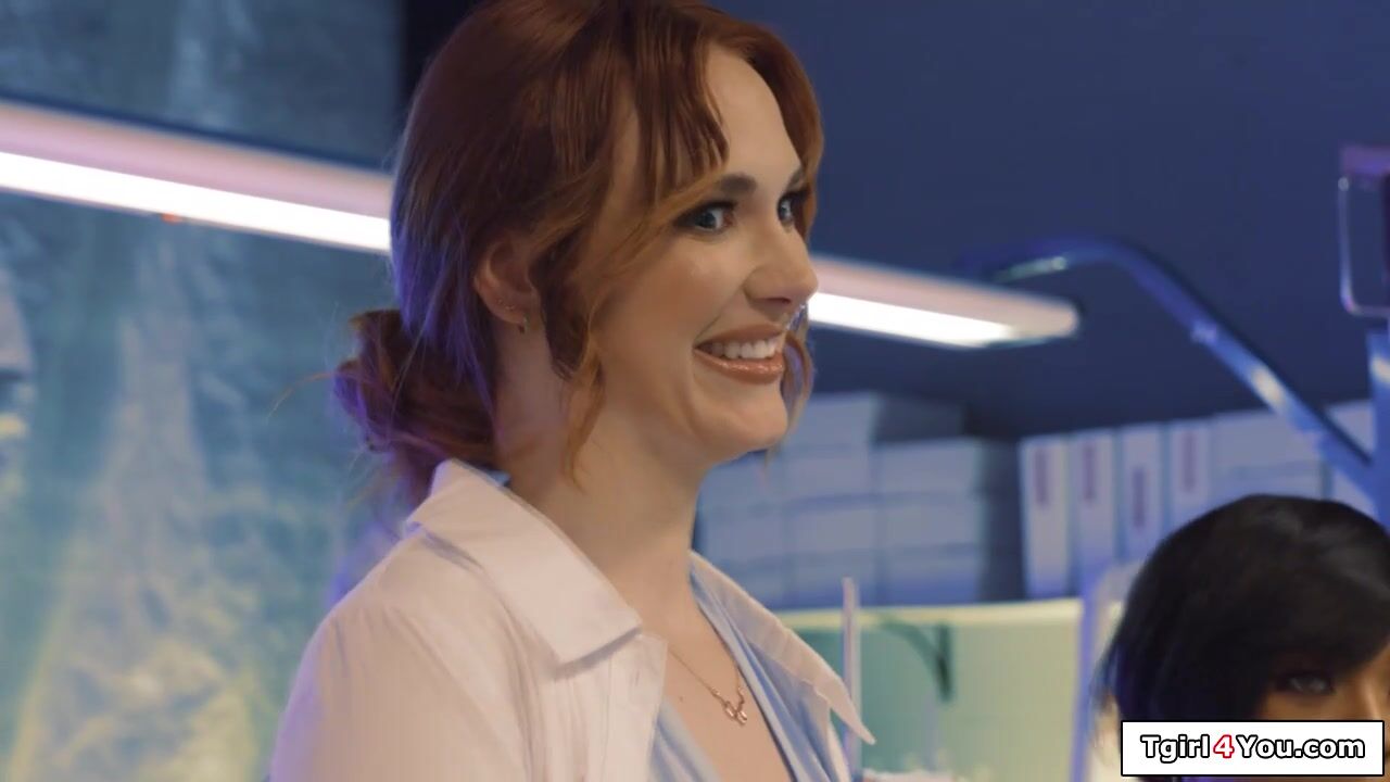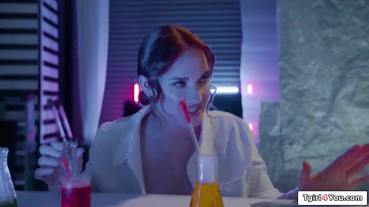 Lady scientist Siri Dahl finds the out of control trans droid Khloe Kay jerking off.The busty babe needs to overload her system by deepthroating the tgirls shemale cock.The tranny anal barebacks her and summons her two fellow droids to join
