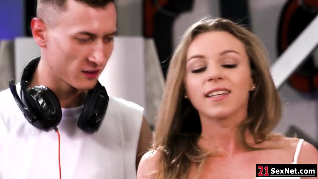 Angel Emily is helping her friend Anita Bellini in the gym.They flirt with the guy who is working out inviting him to a threesome.She is facesitting him while her bff is giving blowjob.They take turns riding him getting her ass and pussy fucked.