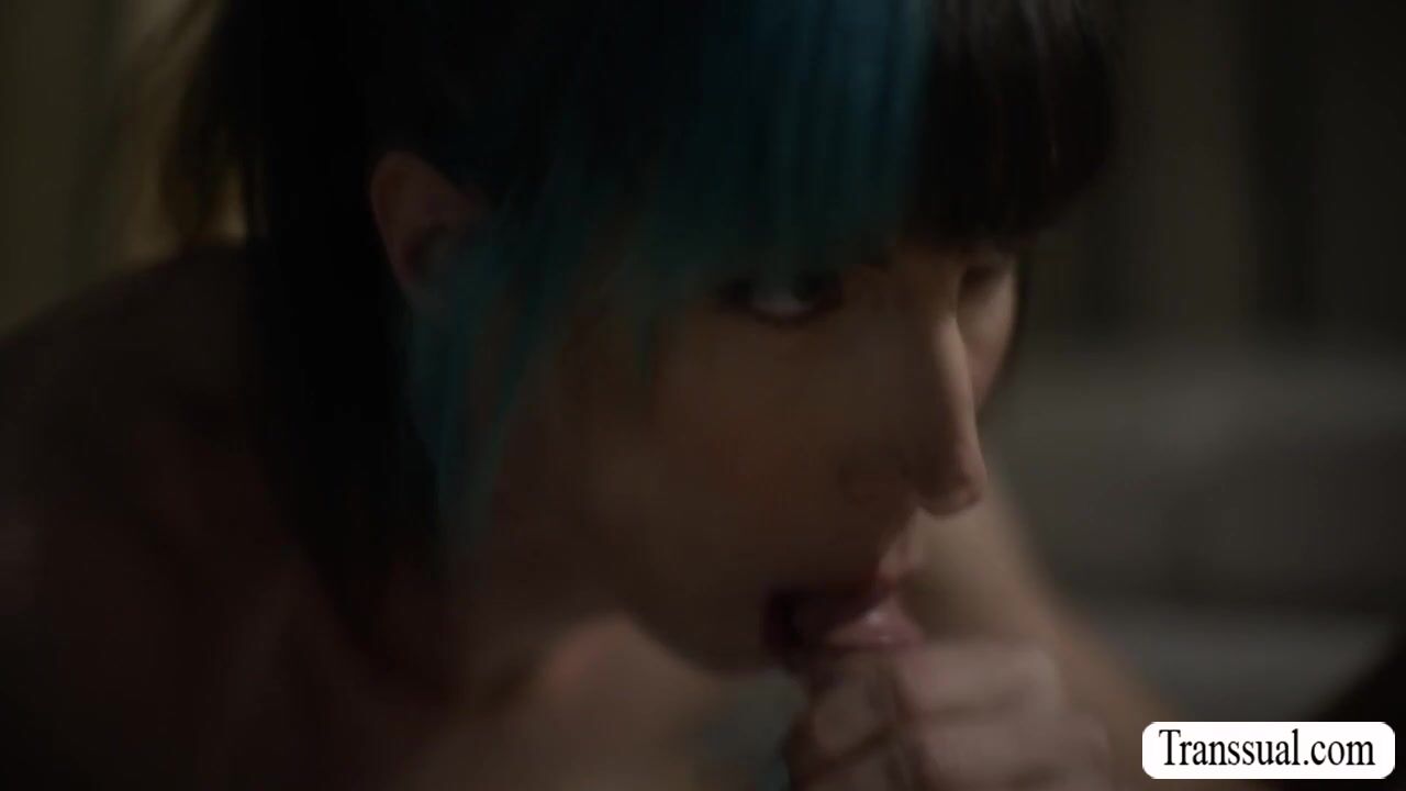 Trans stepmommy and her handsome stepson are on the couch kissing each other.After that,she throats his big dick passionately and in return,her stepson bareback fucks her tight wet ass so deep and fucking hard.