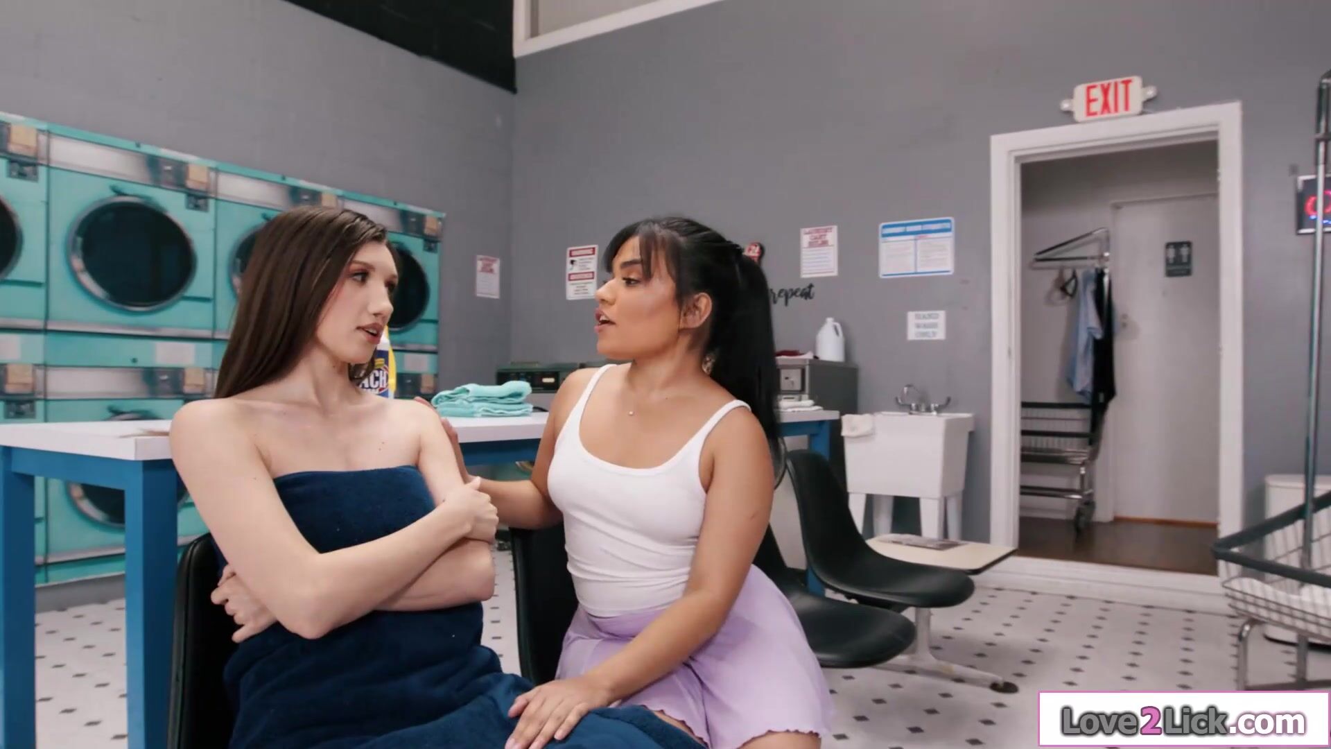 Lesbians lick pussy at public laundromat