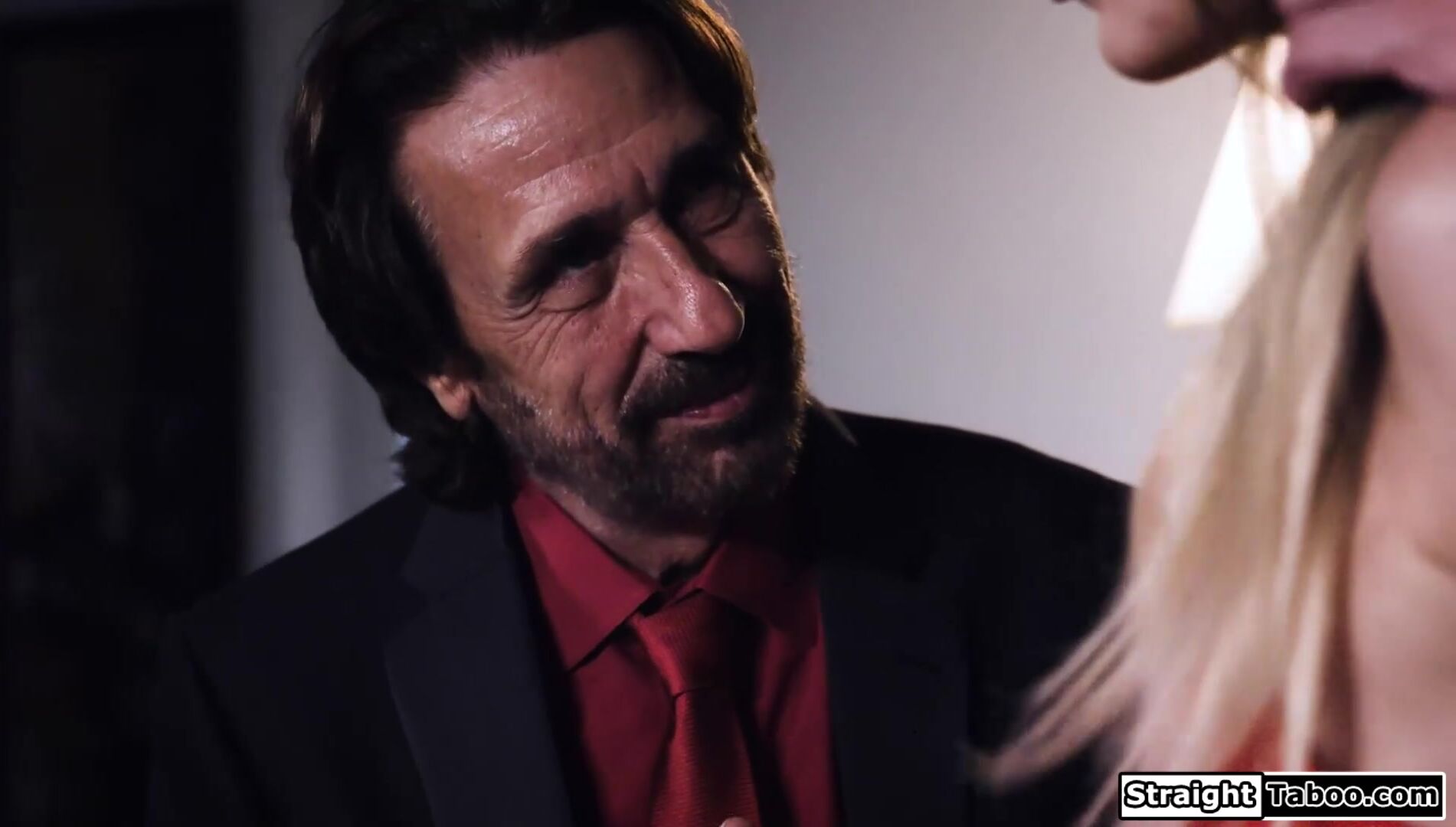 Blonde shows up at her first client and finds out its her professor.He and his stepdad will let her get used to the business and make her deepthroat their big hard cocks.The sweaty babe is pussy slapped and swaps between both guys big dicks