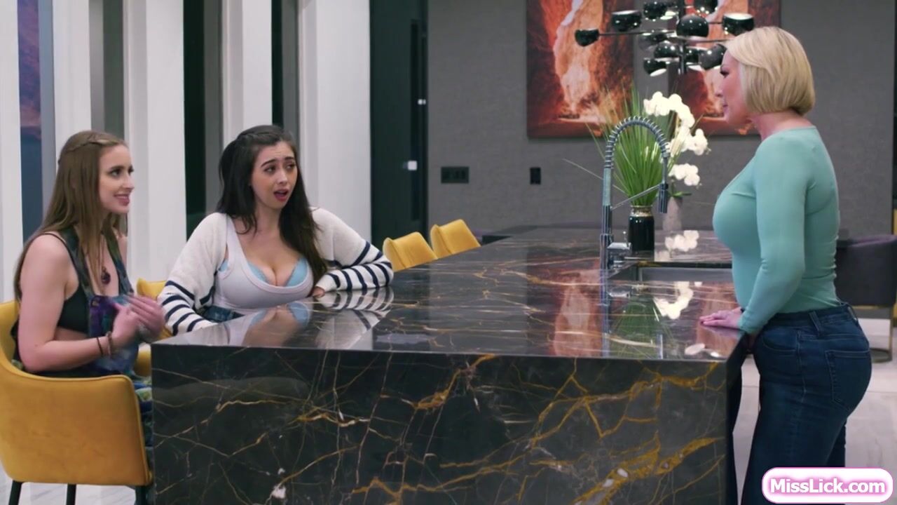 Description: Laney Grey and her stepsis Chloe Surreal take over the house and their new stepmom Mellanie Monroe.They start caressing and sucking her big tits.The busty milf gives in as her teen stepdaughters taking turns licking and fingering her hairy pussy