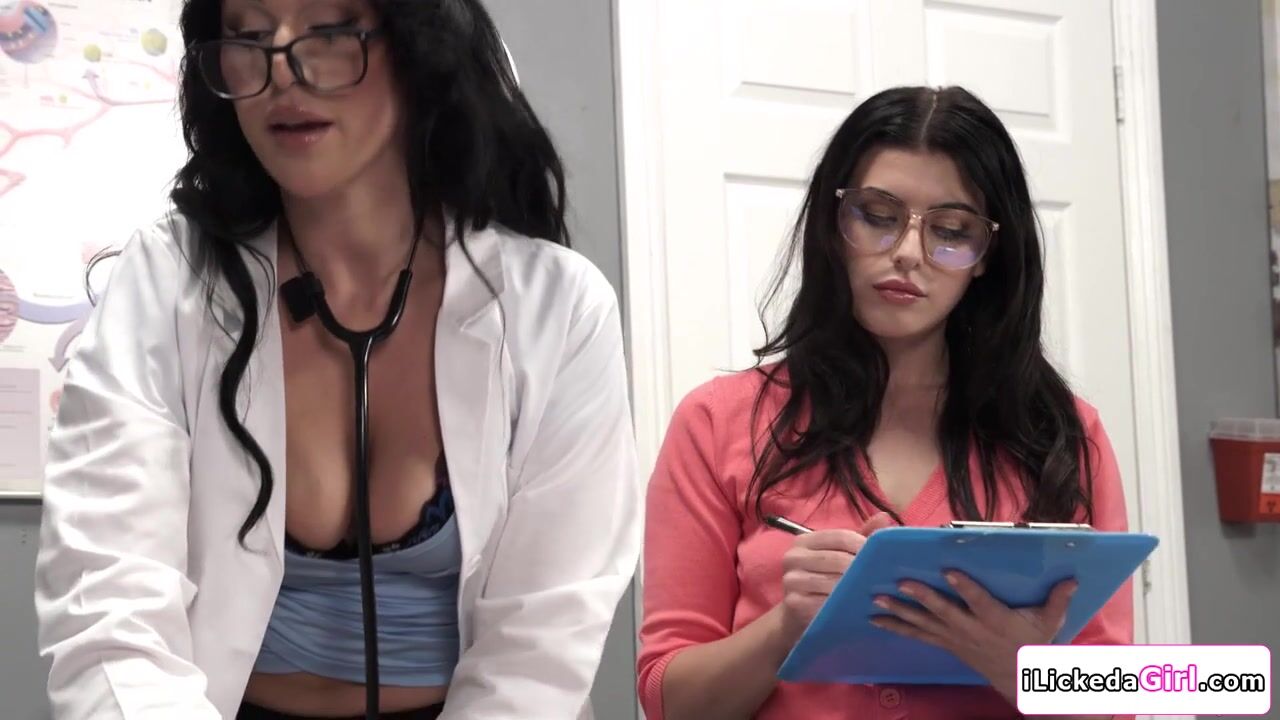 Doctor Queenie Sateen is figuring out patient Eliza Ibarras sexual concerns.It turns out that the latina is a squirter.After getting her turned on,the big tits milf physician and her assistant Gal Ritchie take turns licking Elizas wet hairy pussy.
