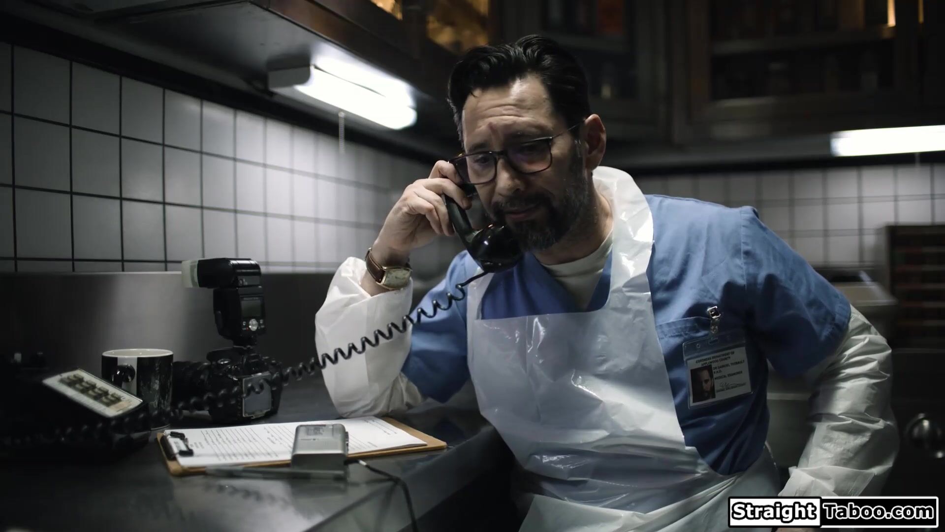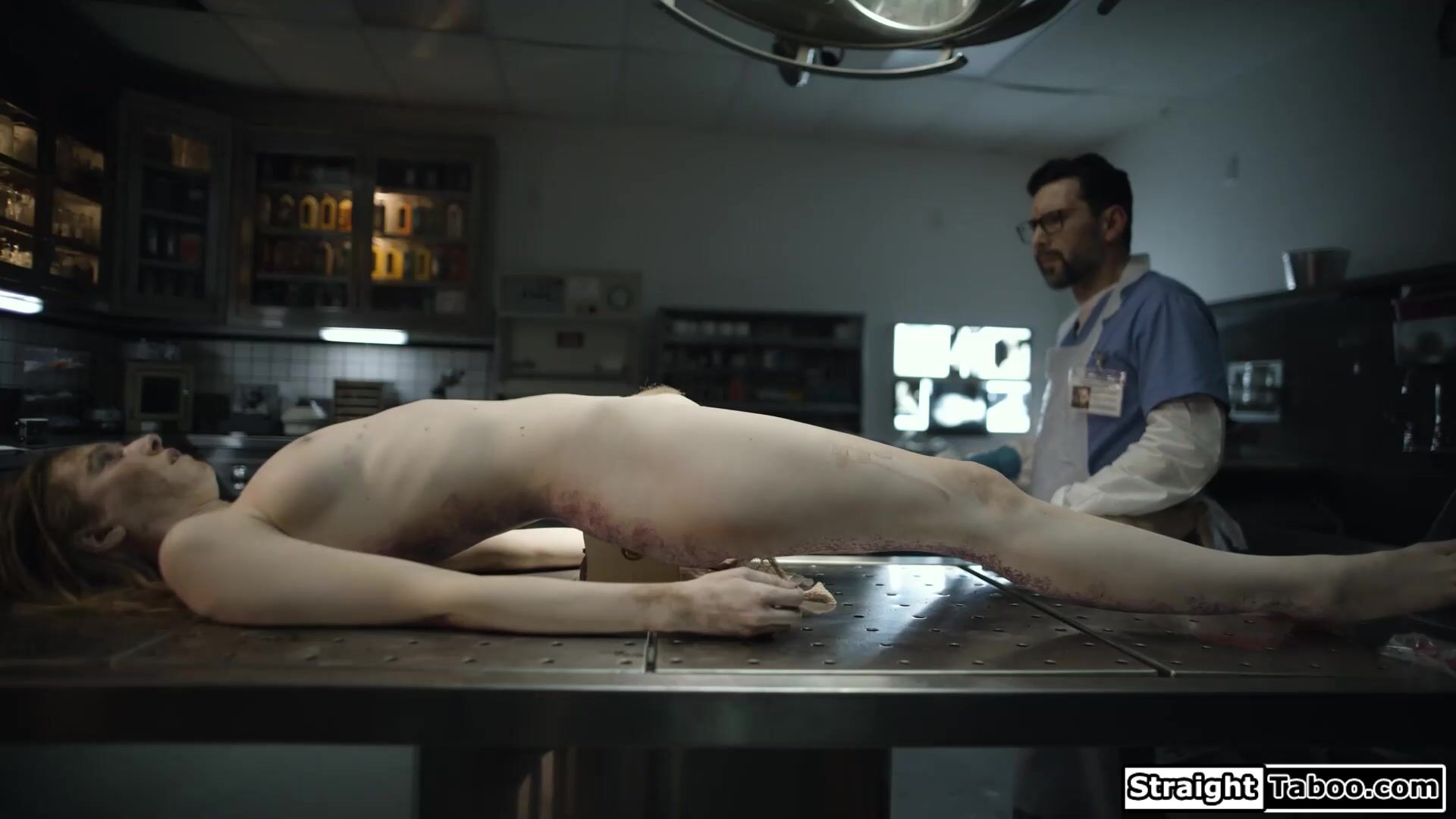 Depressed morgue employee Tommy Pistolis haunted by Jane Doe.Ashley Lane visits him on his bed in his fantasy and wants him to warm her up.The blonde kisses him before he licks her pussy and deepthroat facefucks her.He doggystyles the babe