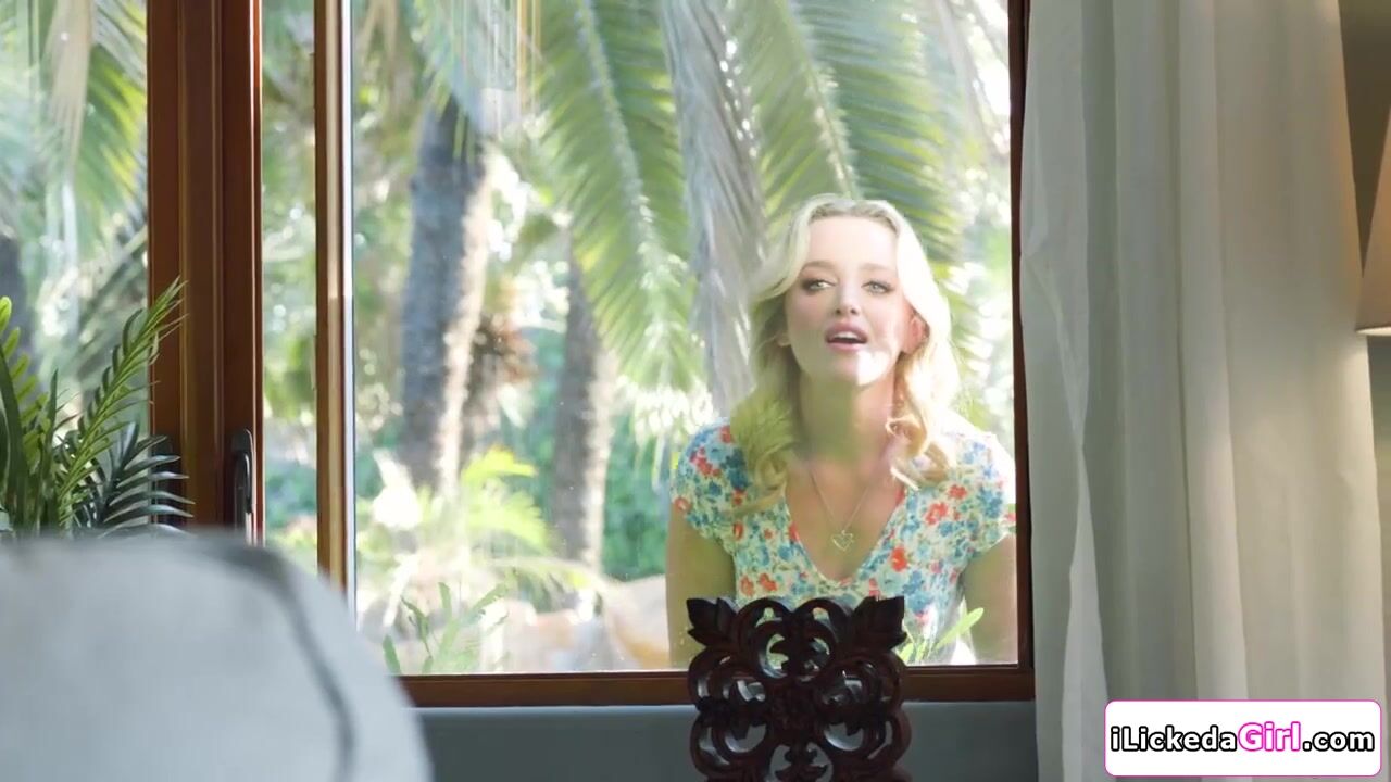 Blonde lesbian milf baited her latina employee to watch her sex video and masturbate.She joins her on the sofa an starts kissing and caressing her.The petite babe is sucking her foot while letting her boss finger her hairy pussy before licking her.