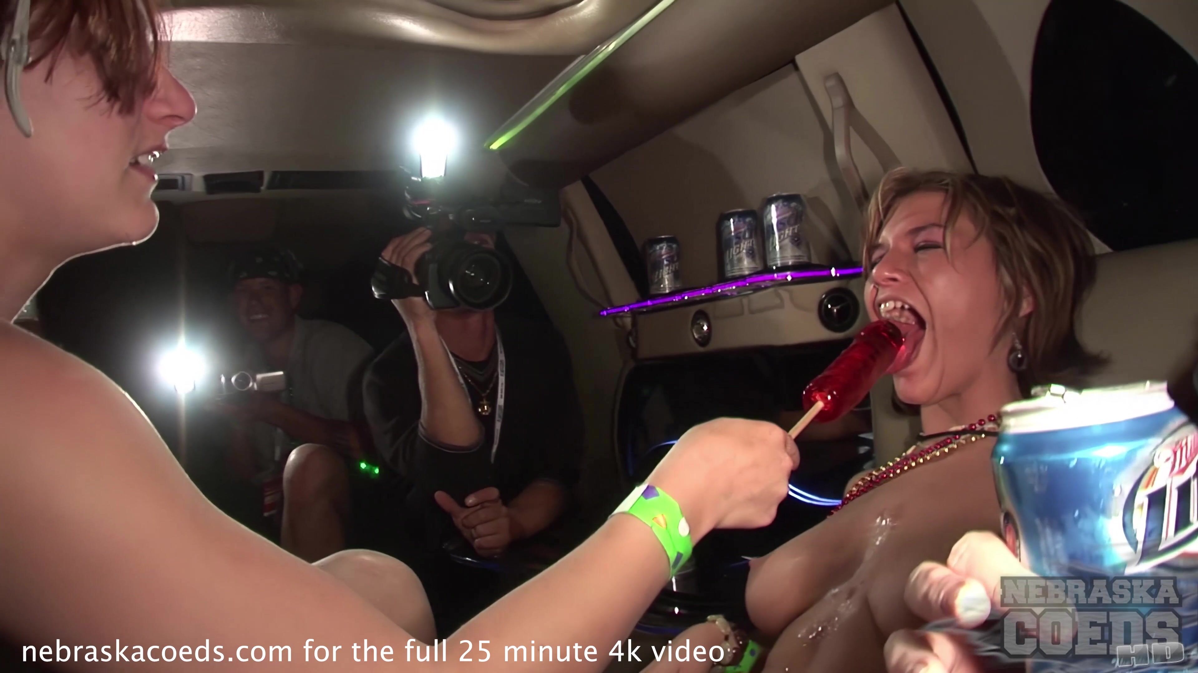college intiation in a limo and back to the house in behind the scenes video with squirting