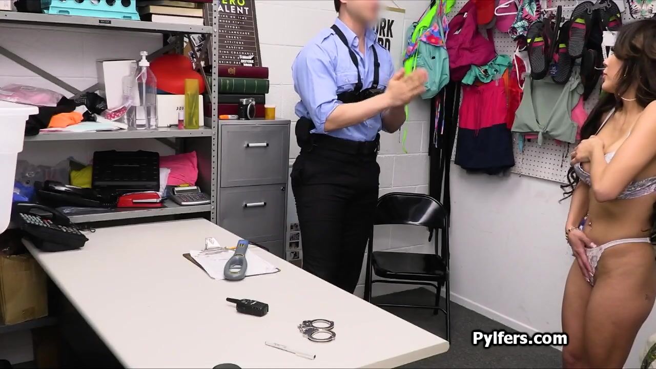 Jena got escorted into the back office for questioning and strip search.. and then the stolen jewelry has fallen out of her bra.. it was time to suck dick!