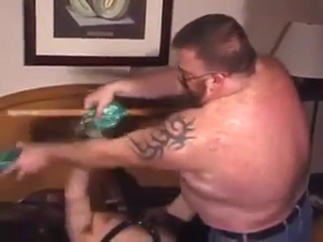 A hairy, muscular bear and his cub engage in a kinky BDSM session. The beefy bear takes control, dominating his cub partner with a mix of pain and pleasure. Amateur footage captures an intense, raw role-play.