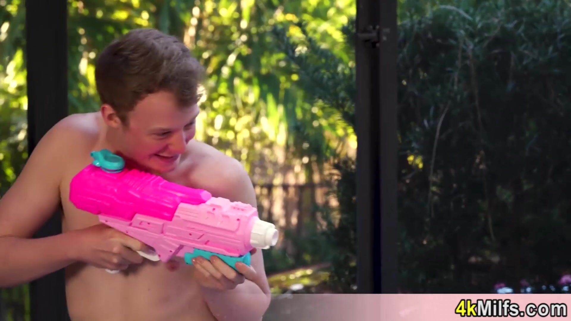Busty stepmom loves the new pool so we decided to give her the orgasm of her life via double fuck