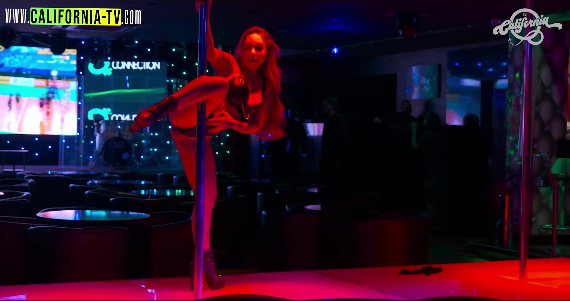 The hot blonde goes to a men's club in the city of São Paulo to do a striptease.