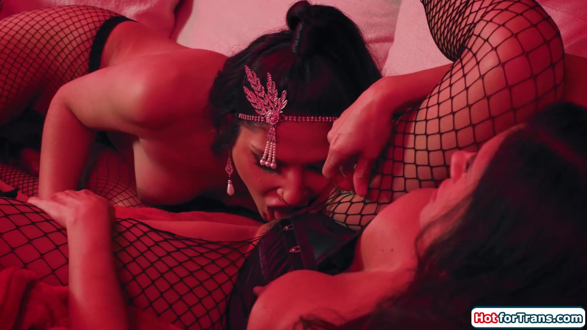 Busty magician Penny Barber magically makes tgirl Zariah Auras dick hard.The small tits latin shemale is kissed and gets her big tranny cock sucked off.The brunette trans licks the big boobs milfs pussy and bangs her hard with her transsexual hardon