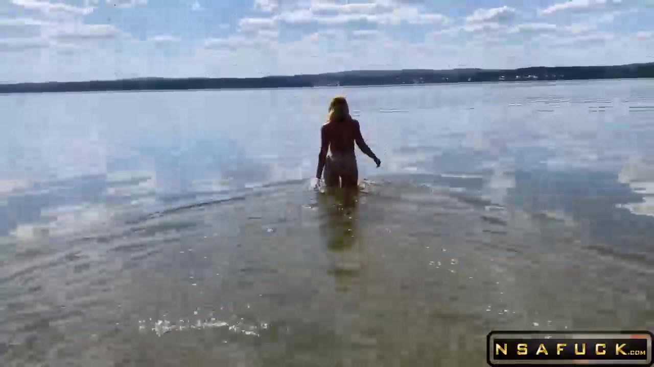 Stepsister with Juicy Ass Plays on the Beach without a Swimsuit