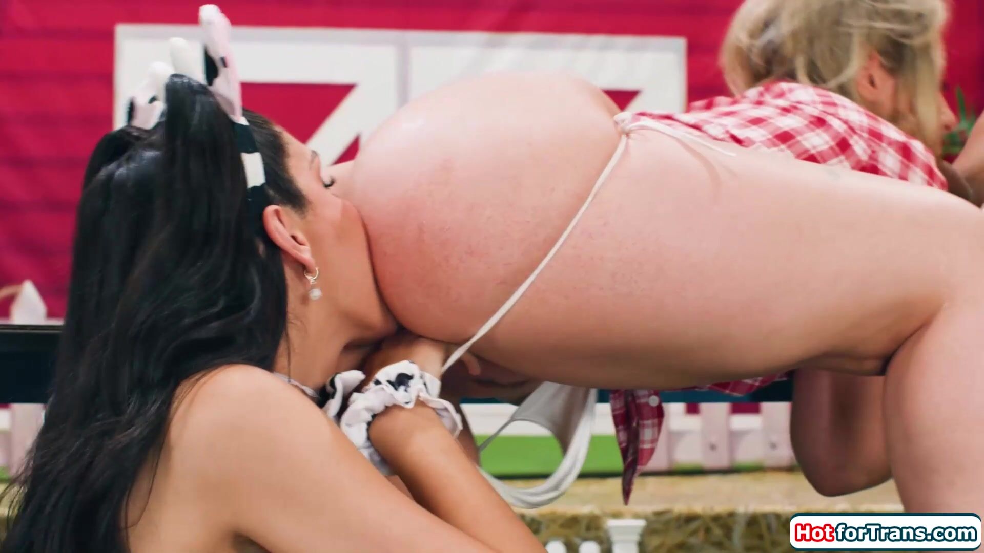 Milkmaid Tommy King milking busty shemale Eva Maxim and big cock tgirl Zariah Aura.The babe sucks tranny dick while being rimmed and pussy fingered.The blonde rides the big tits latina trans cock.She gives a blowjob while being anal barebacked