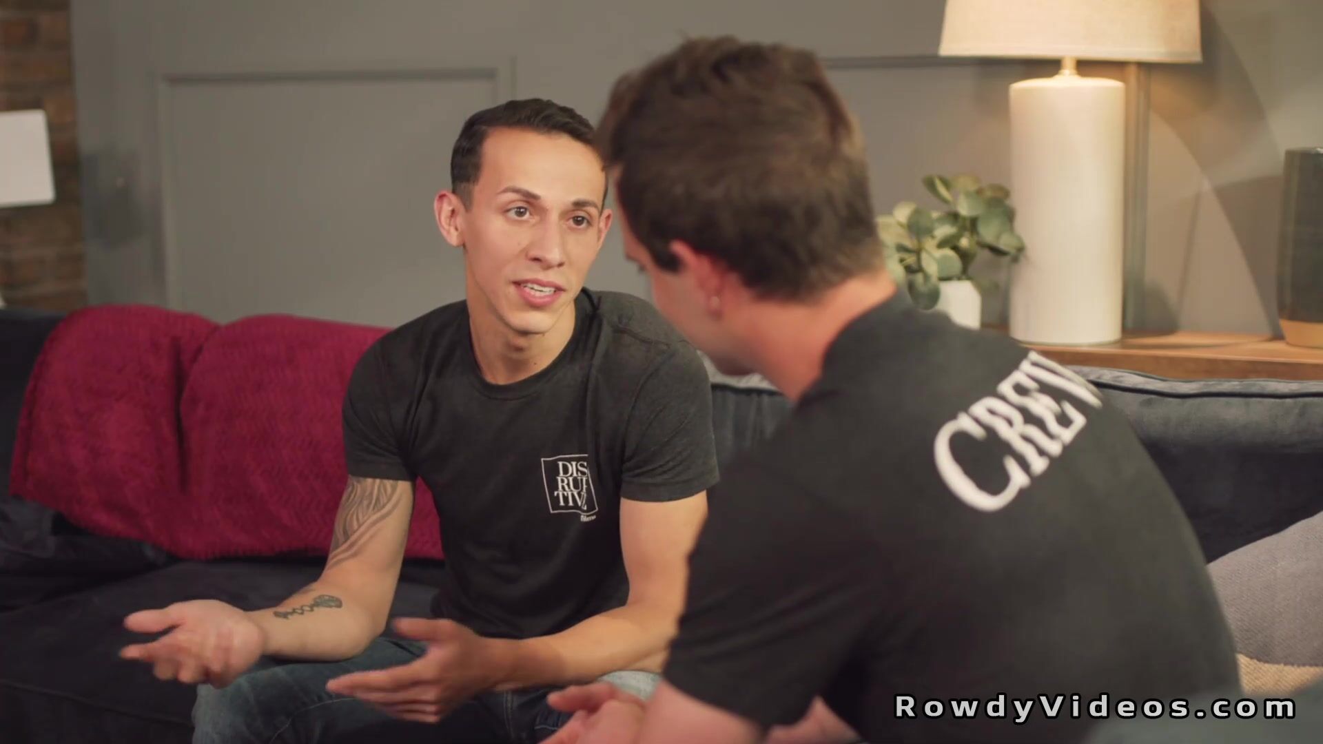Scott Finn takes a production job in the adult industry after finished school and he is not sure what to expect on a porn shoot so Des Irez shows him with oral and anal sex