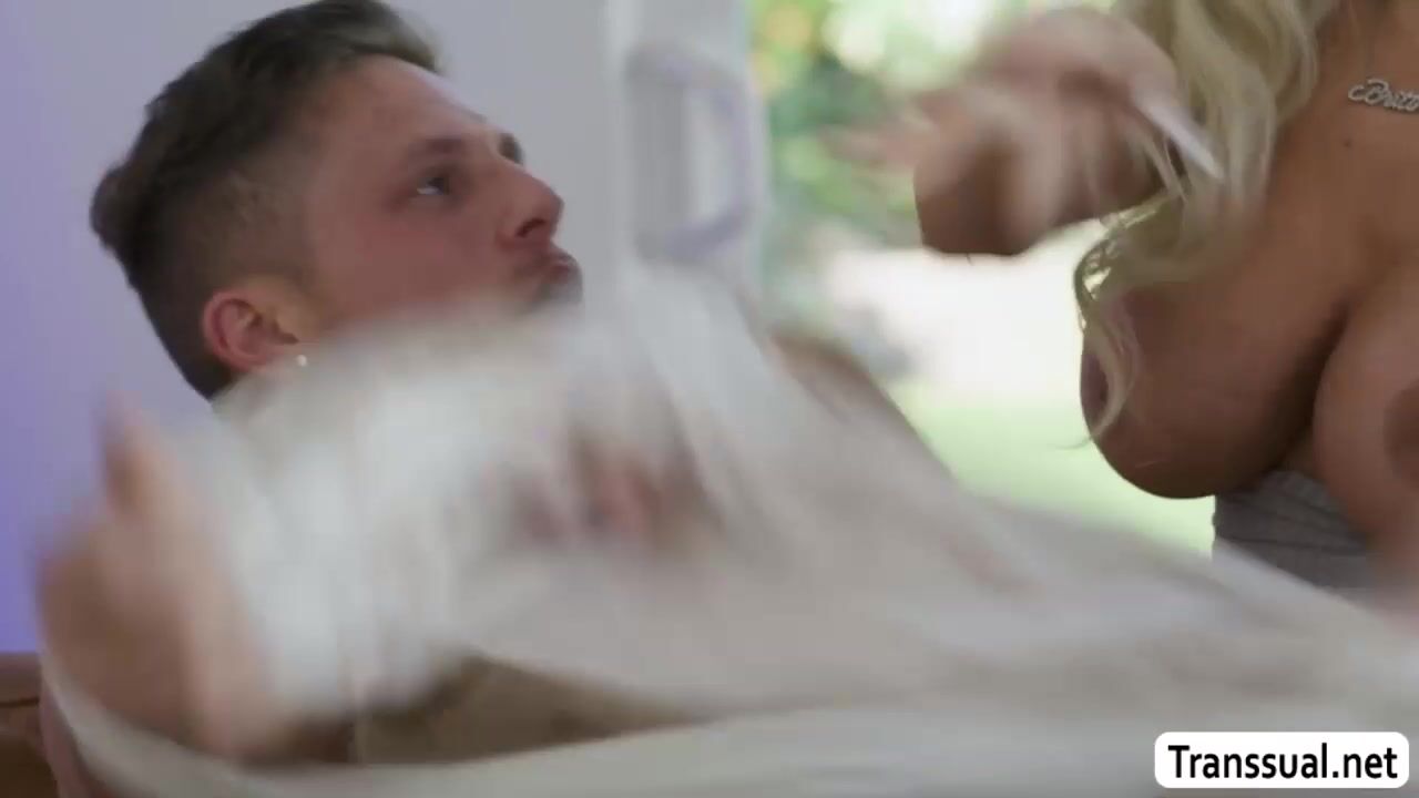 Trans Brittney Kade seduces her stepbrother Roman Todd to fuck her wet ass.First,she throats his hard big cock passionately and in return,Roman bareback fucks her ass so hard.Go to Transsual.net for discount and more videos.