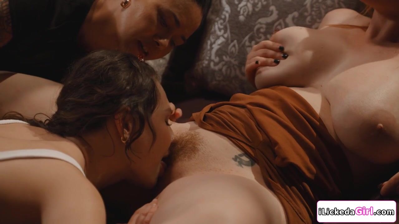 Lesbian milf couple Dana Vespoli and Lauren Phillips are teaching their stepdaughter Liz Jordan how to please a woman.The teen starts off kissing them then goes down licking her redhead stepmoms hairy pussy.Then Dana wears a strap on and fucks her.