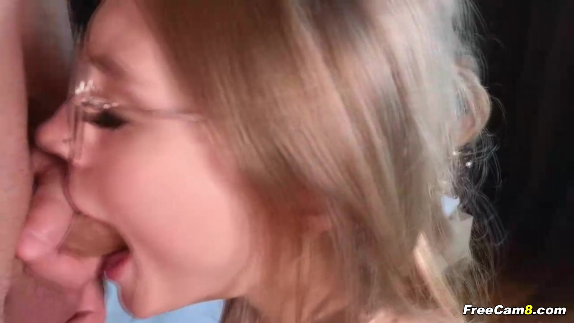 Nerdy Petite Babe Sucks Dick and Swallows Cum