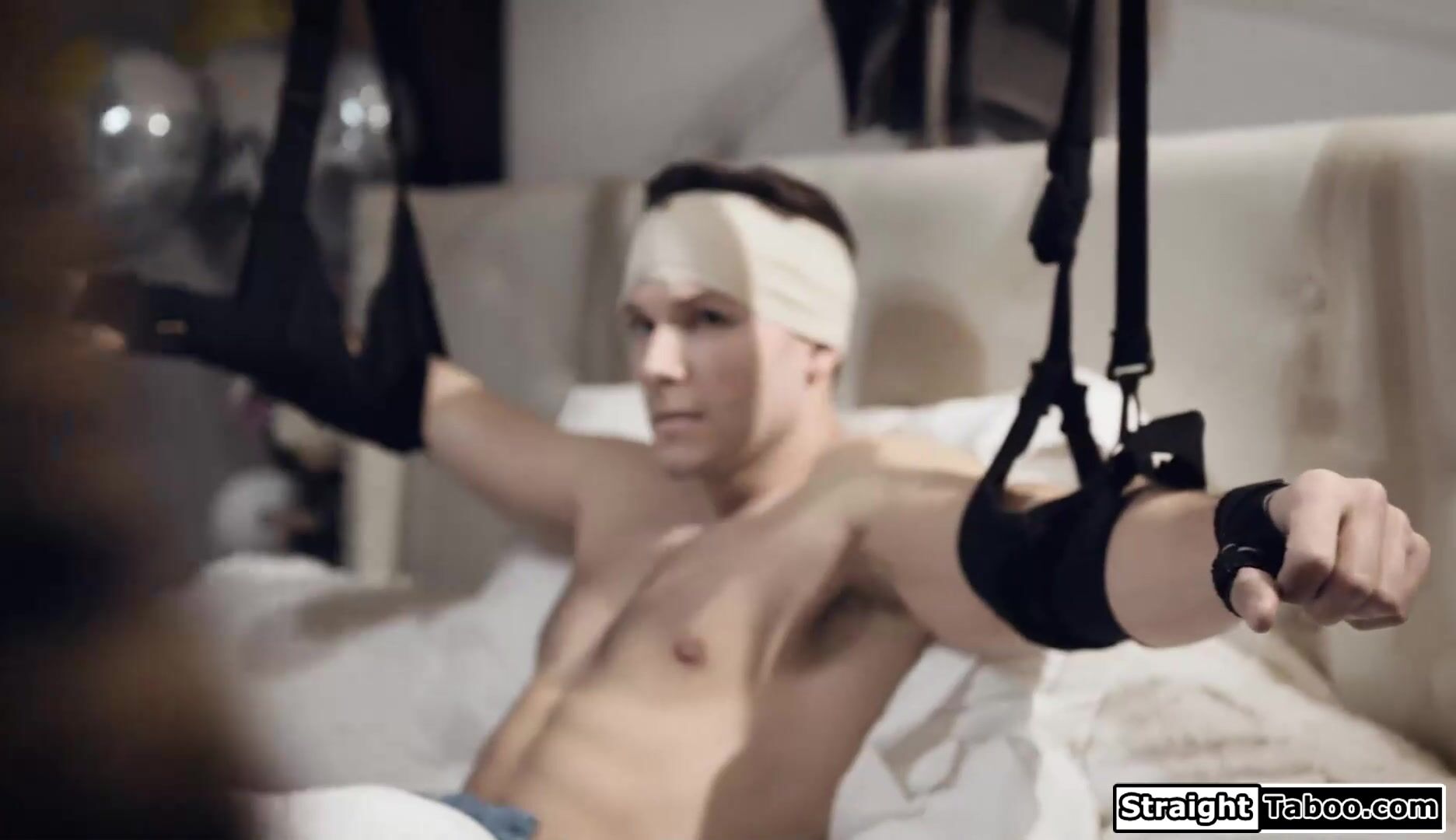 Busty stepmom Kit Mercer knows its akward but helps her stepson,who has both arms in slings,to relieve tension by giving him a handjob and blowjob.After he healed up he now expects more from the big tits milf and makes sure he is going to fuck her