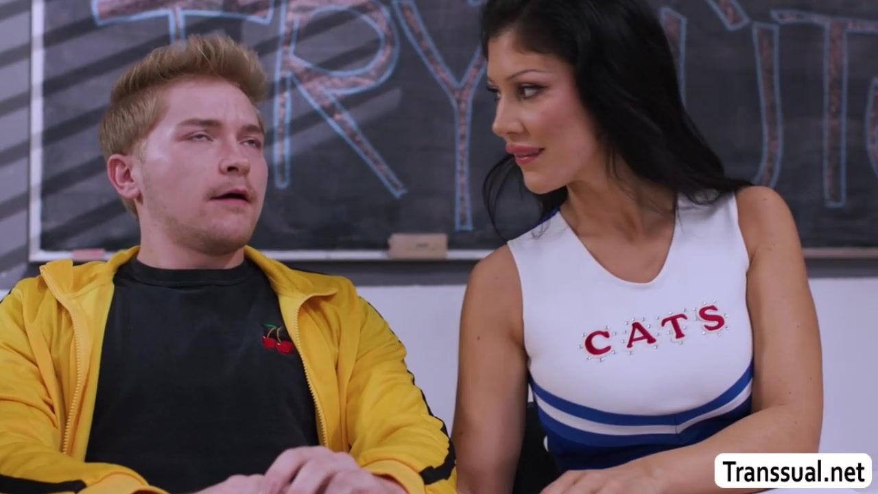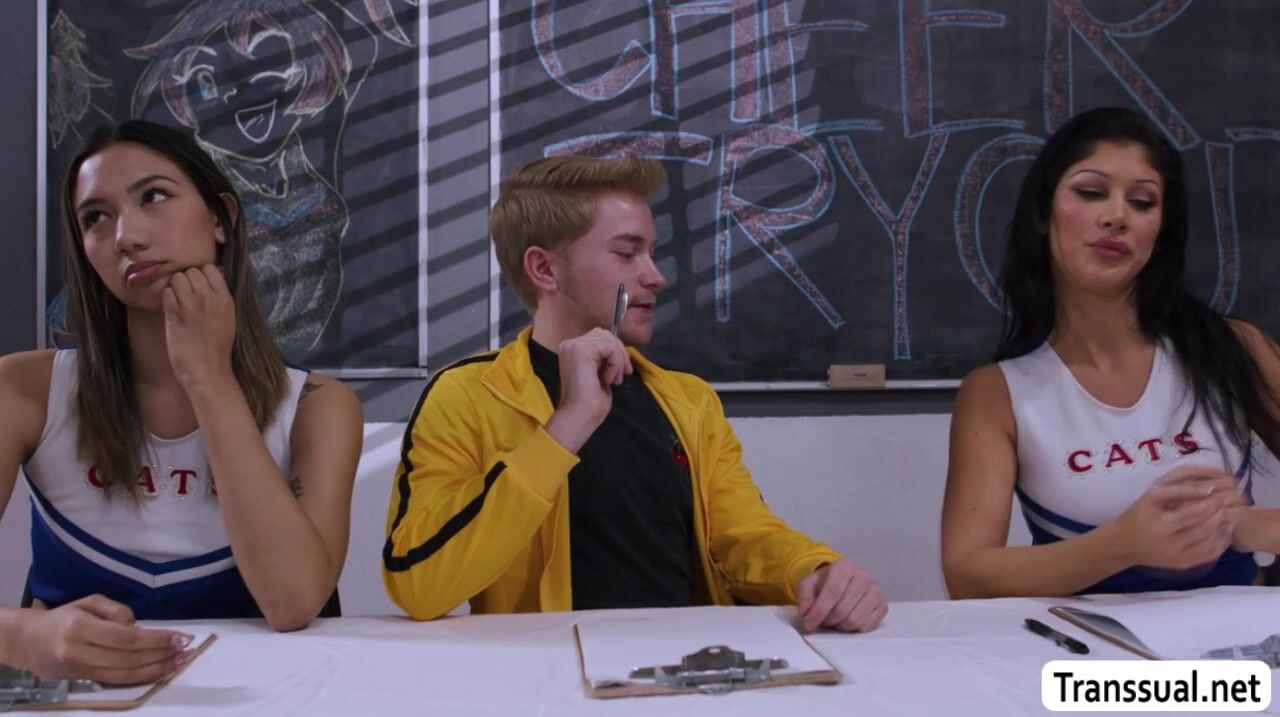 Big tits TS blonde audition for a cheerleader in their campus and the judge gets horny after seeing her shecock.They start kissing each other and judge sucks her shemeat passionately and in return,she fucks her pussy and go to Transsual.net.