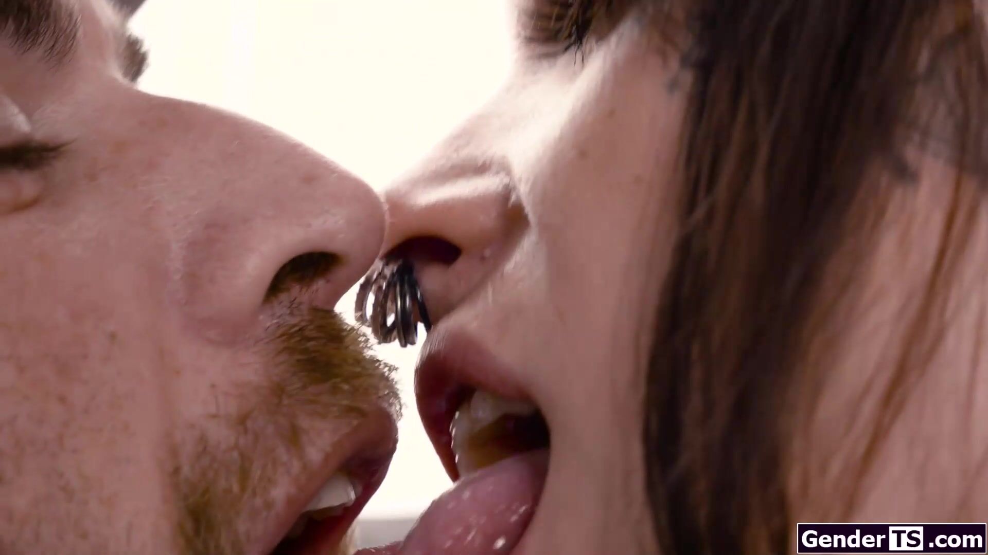 Tattooed alt tgirl Amy Nosferatu has the hots for her roommate.The small tits shemale kisses him and she gets on top of him putting her tranny dick in his mouth while sucking him off in a 69er.The brunette trans is rimmed and anal barebacked