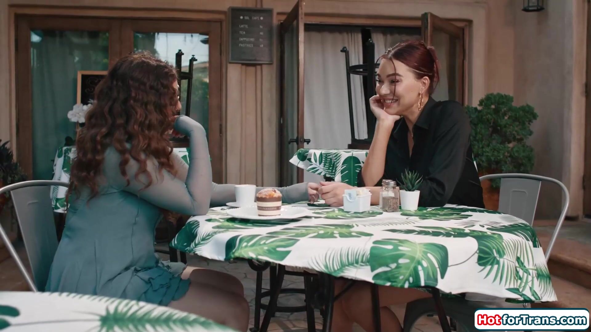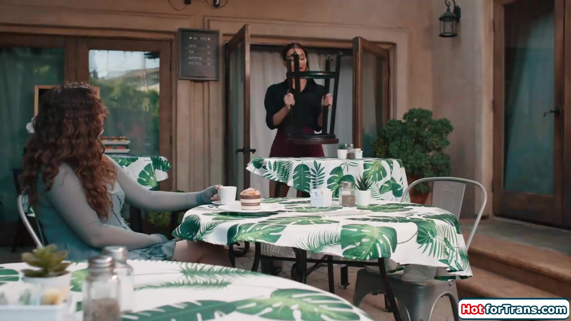 When busty tgirl waitress Emma Rose sees her old friend Leana Lovings in her cafe the attraction sets in.Since shes closing anyways the petite brunette sucks the big tits shemales cock and lets her lick her shaved pussy.The redhead trans bangs her gf