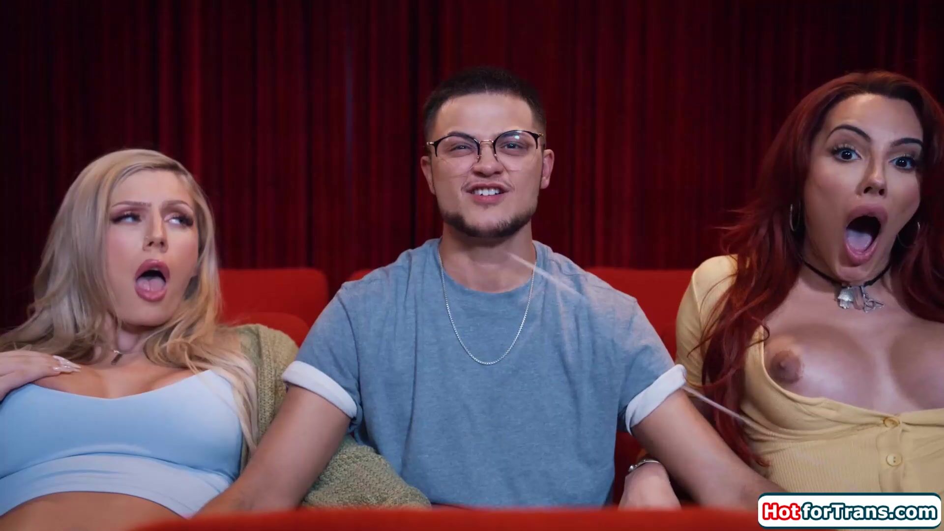 Busty shemale Jade Venus sucked off by big tits tgirl Ariel Demure at the cinema and let trans man Nicky Zeal join.The blonde tranny licks his manpussy and he is facesitted to rim while the redhead latina transsexual bangs him in his wet snatch