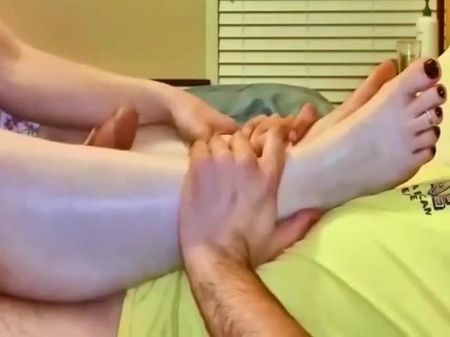 This amateur video showcases a wife's incredible skills as she delivers a powerful double cumshot with her feet, combining foot fetish and handjob for an unforgettable experience.