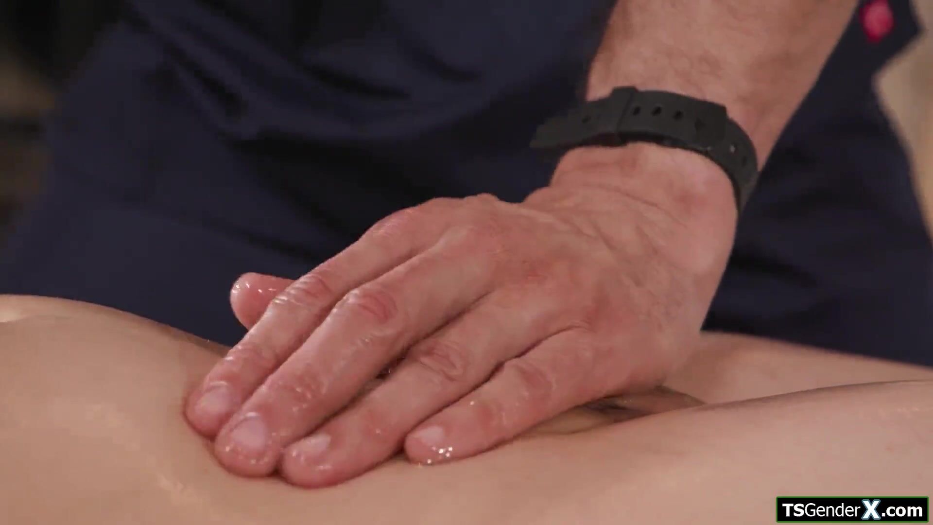 Shemale Alexa La Flor gets turned on from her oily massage and doesnt mind when her works on her tranny dick.He fucks the tgirls feet and sucks on the small tits trans babes cock.After the brunette transsexual gave a handjob he anal barebacks her