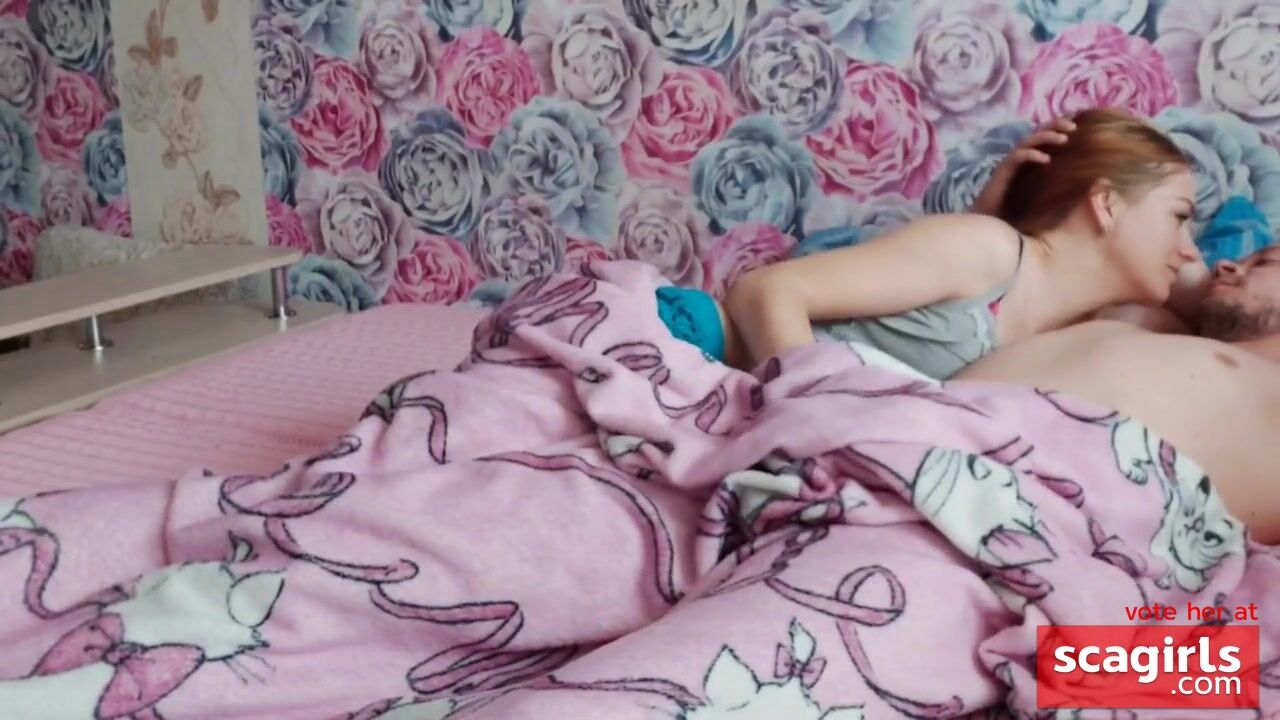 A stunning redhead babe with a perfect ass and big tits gets naughty with her stepbrother in the morning, enjoying a passionate amateur session filled with intense blowjob, cumshot, and orgasm, culminating in a selfie moment with cum on her face and tits.