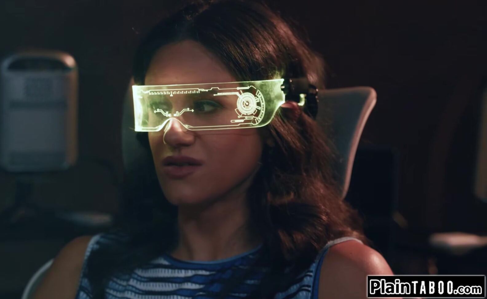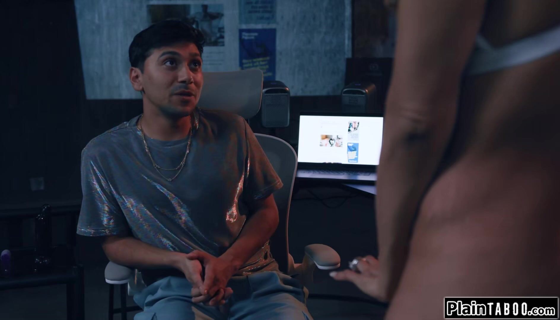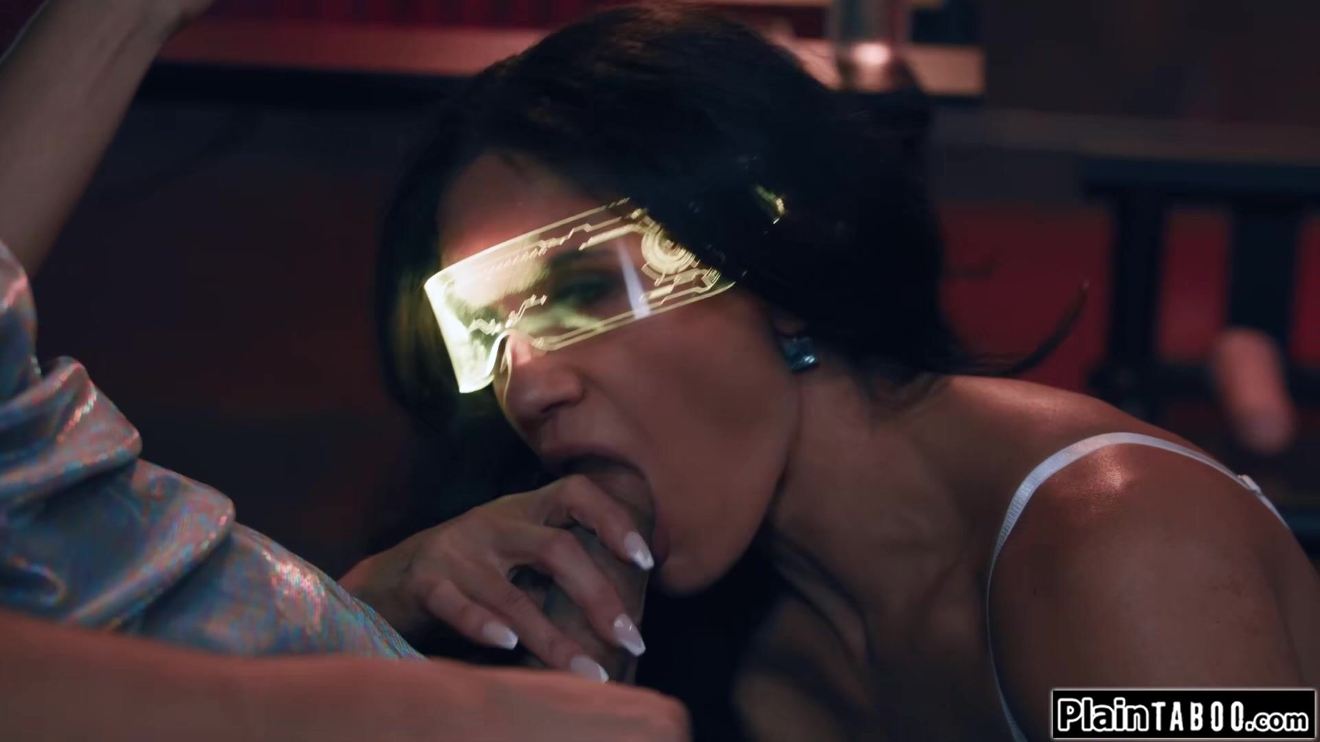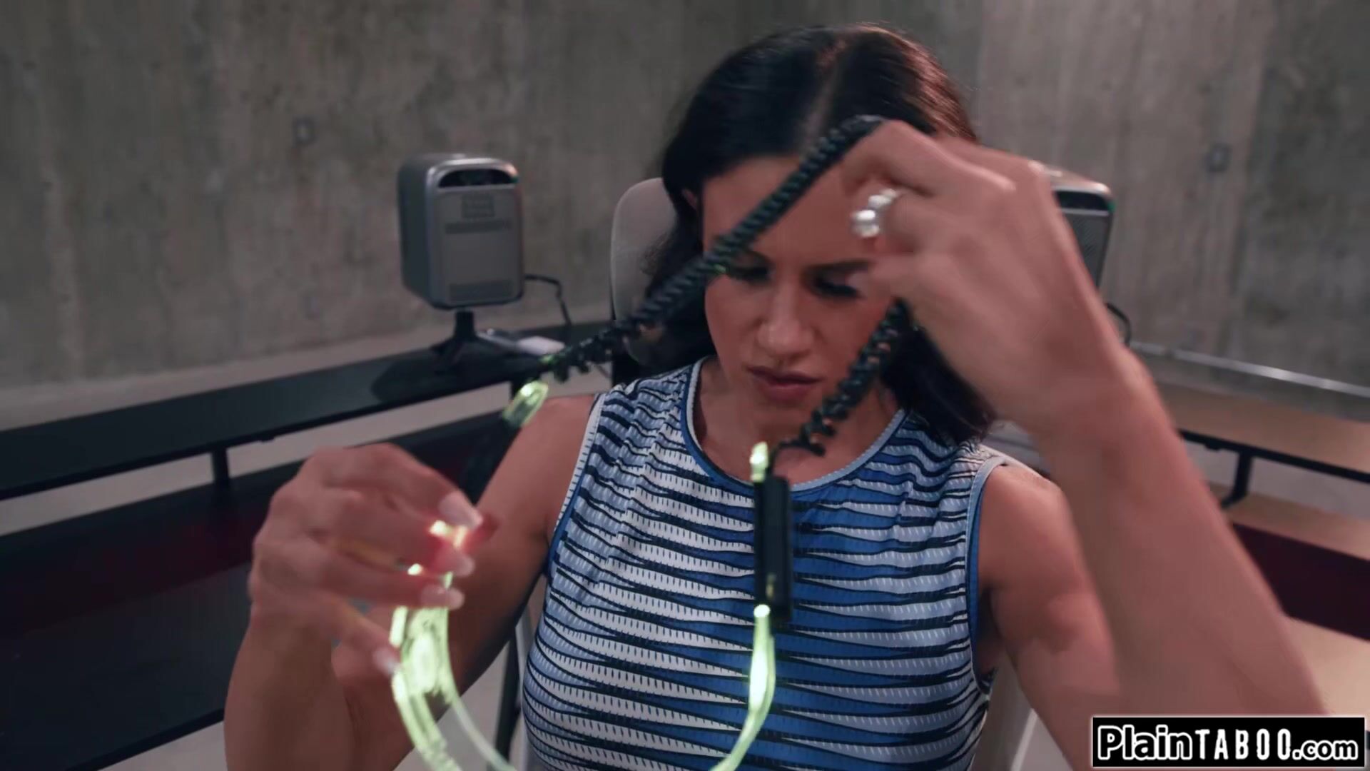 Big tits stepmom Penny Barber lives out her fantasy in her own virtual reality.The busty brunette milf kisses her virtual stepson and lets him pull her nipples.The brunette deepthroats his big cock and sets her pussy on it.She rides until she squirts