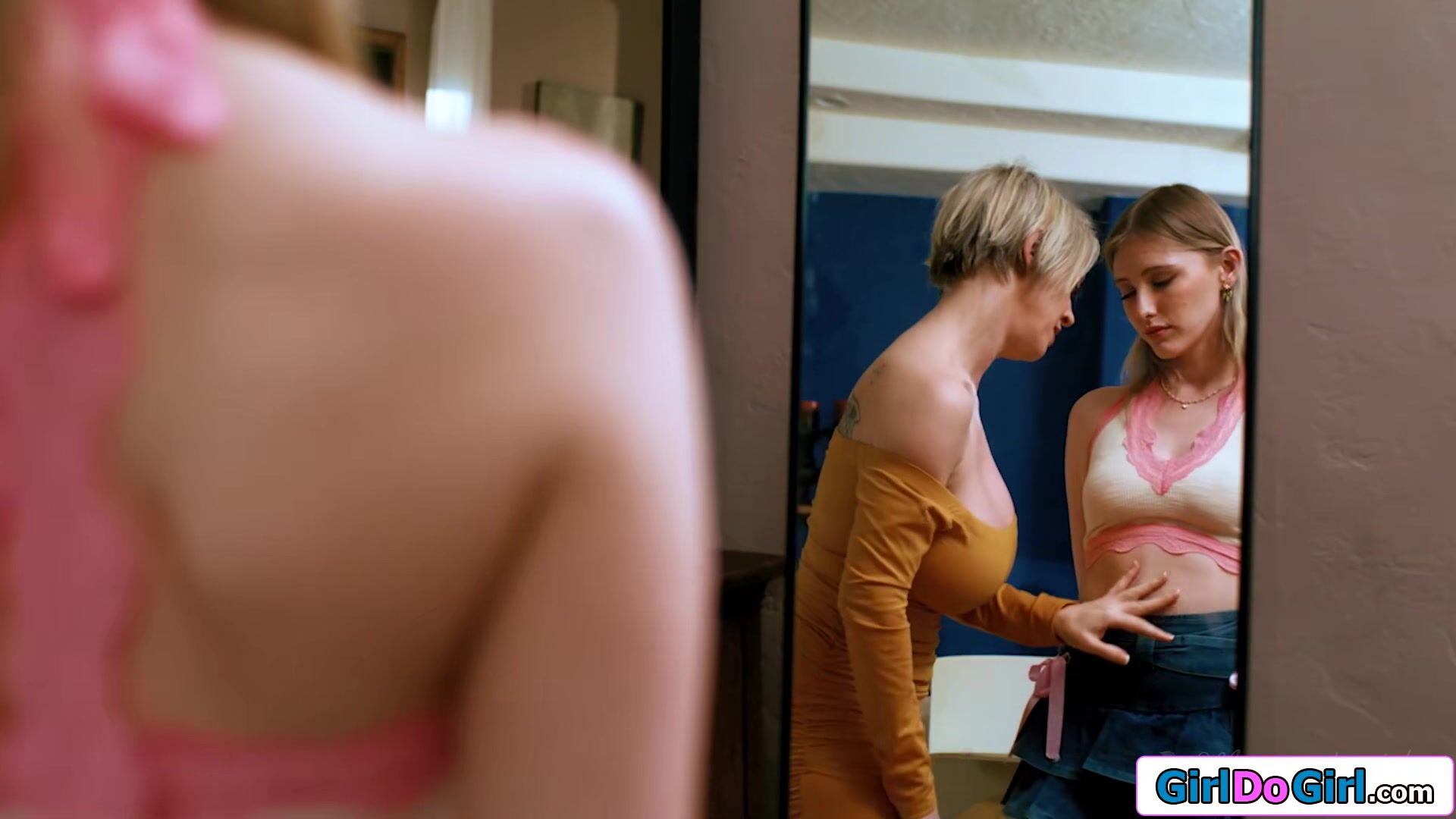 Busty mature stepmom Dee Williams confesses how hot she thinks her stepdaughter Melody Marks is.The petite cutie makes her move.The milf gets her huge boobs sucked and facesits her with her shaved pussy.She fingers and licks her stepdaughters pussy