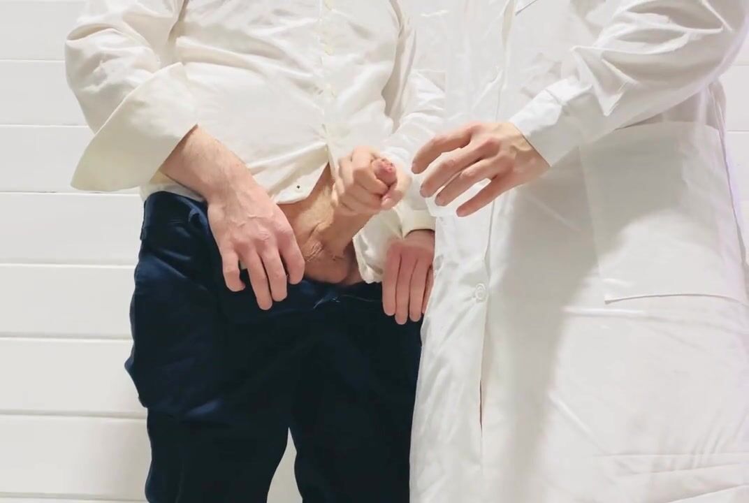 A naughty nurse takes her job a bit too far and helps a patient with his sperm analysis by offering her own 'services'. She uses her body to extract the sample, and the patient is more than happy to oblige.
