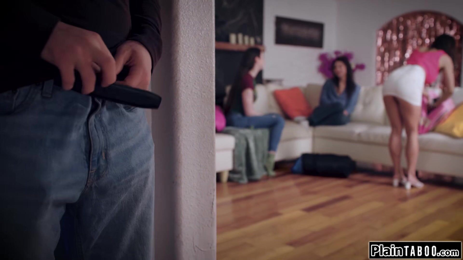 Stepdads scheme to fuck his busty stepdaughter Hazel Moore works out well.He sends her gf Jill Kassidy to his stepson where shes anal reamed.In the meanwhile big tits latina Hailey Rose walks in on them fucking and the old perv isnt finished yet
