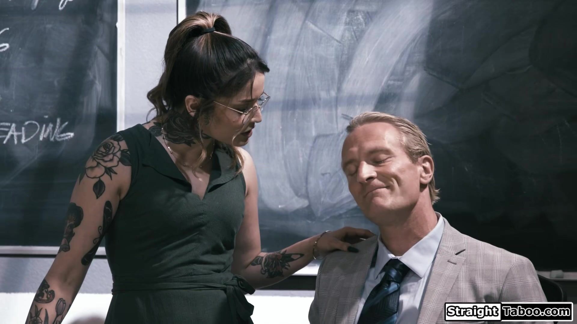 You fucked a lot of students back in the day Mr Harris so why not me.Latin Vanessa Vega is clear on what she wants and makes her old teacher lick her pussy on his desk.The small tits petite tattooed latina gives a sloppy blowjob before getting banged