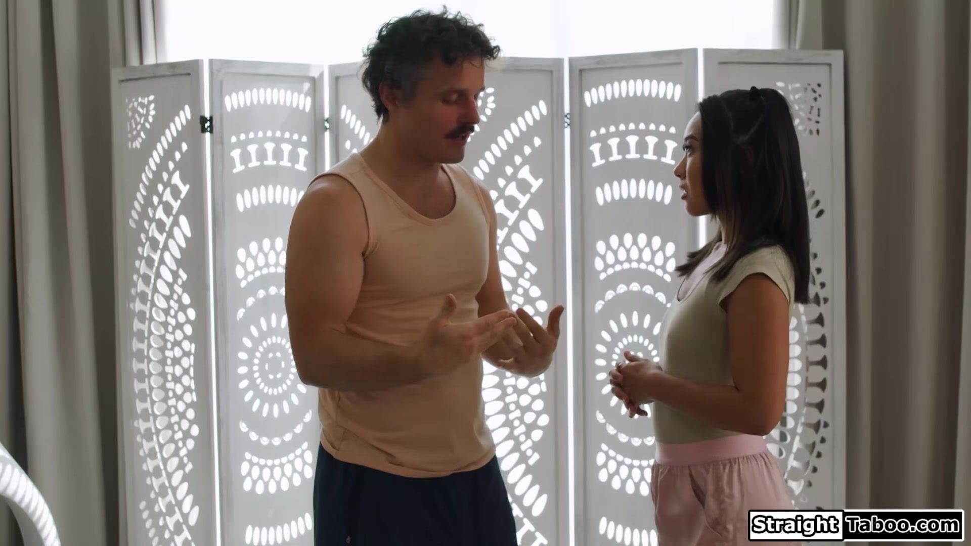 Petite Asian babe Kimmy Kimm does not dare to say no to sex to her companion now that he thinks it would improve his condition.She kisses him and spreads so she can get her hairy pussy licked.The small tits brunette sucks his big cock and is fucked