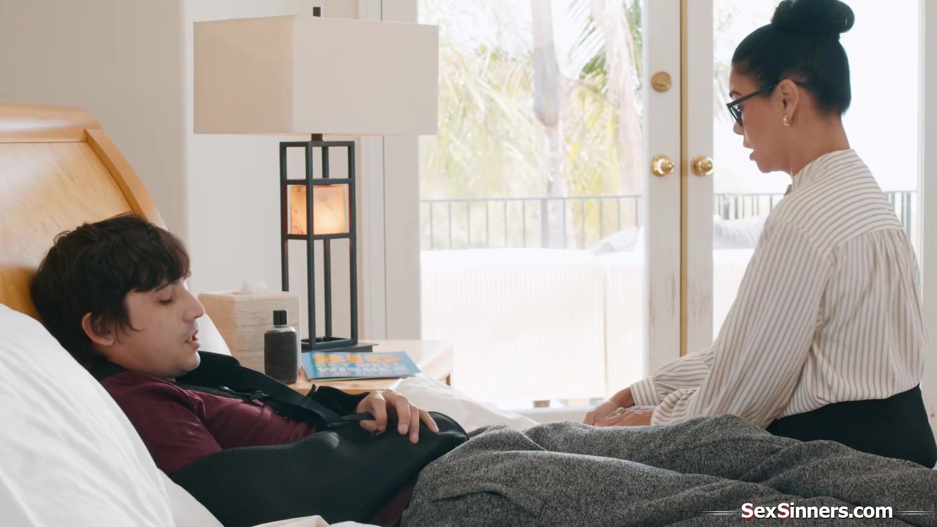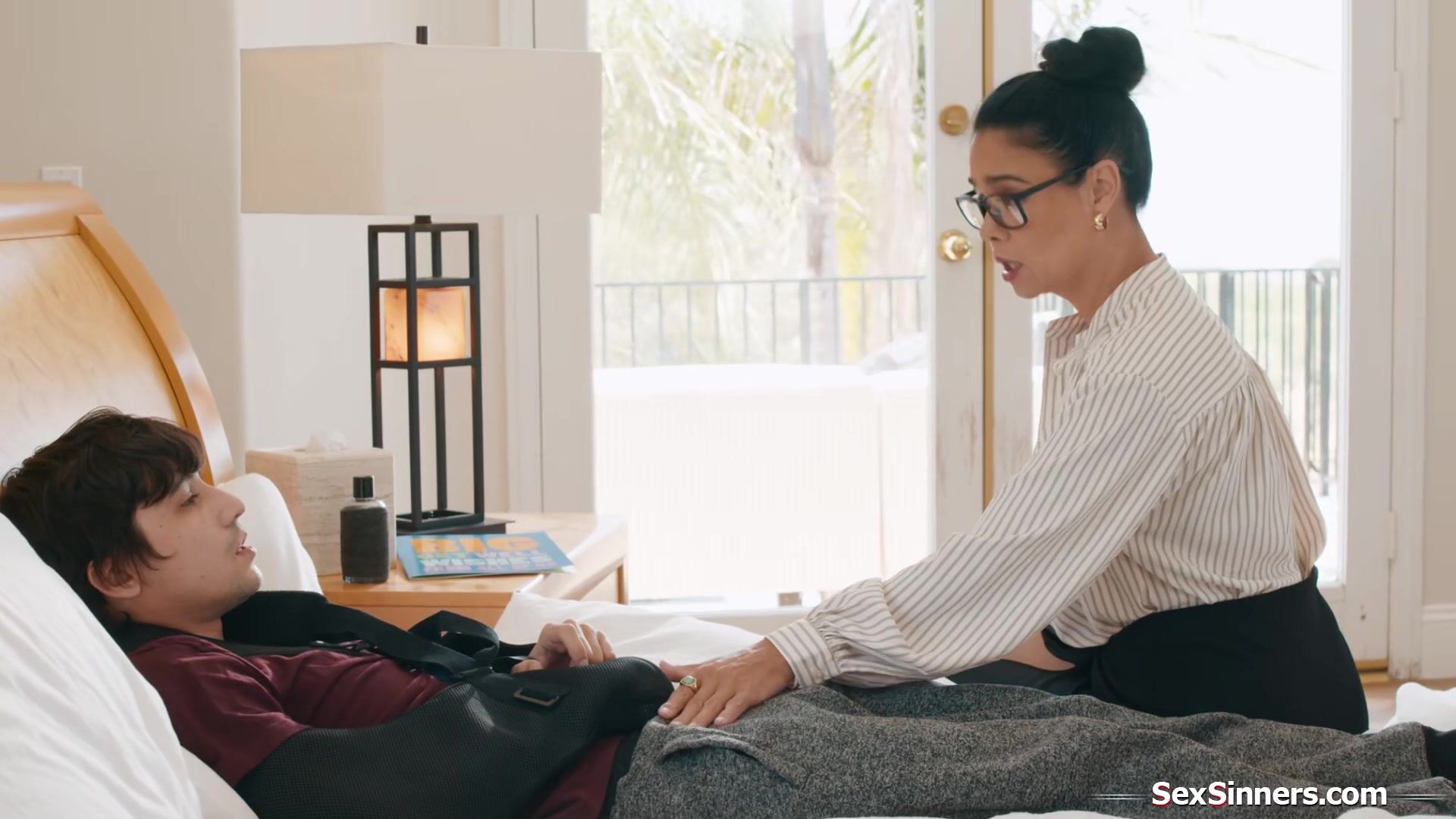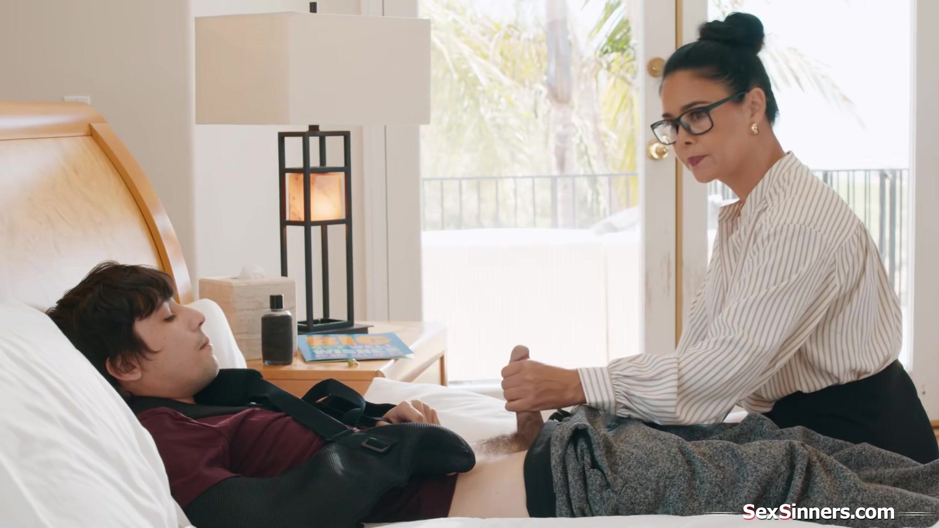 Mature Asian teacher feels so sorry for her student.With two broken arms he cant even jerk off.The milf decides she could give him a HELPING HANDjob.Now that shes gone across the line anyways she deepthroats and tittyfucks him before riding his dick