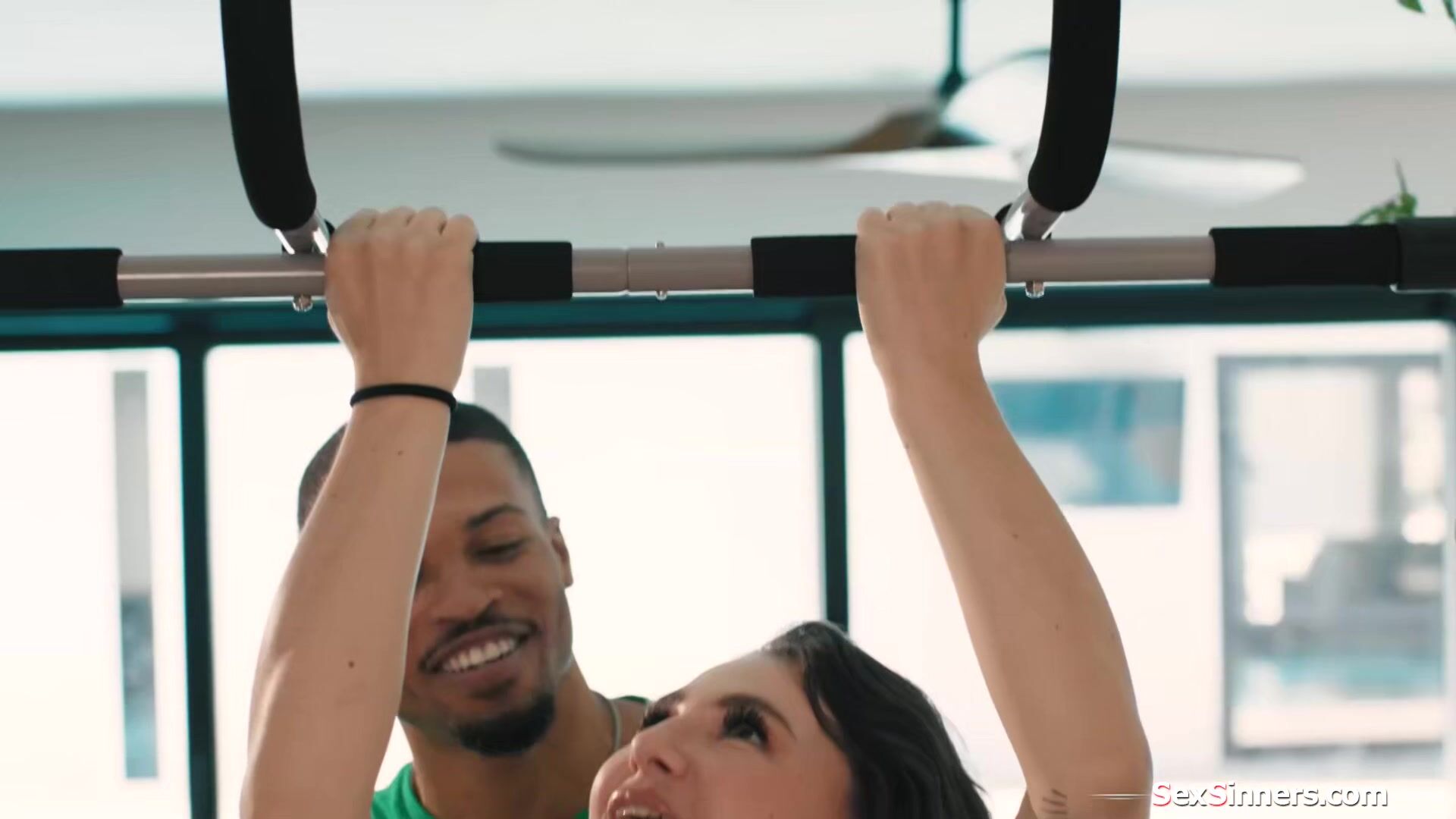 Teen Liz Jordan asked her bros black friend to help her setup a pull up bar.He grabs her ass and they kiss.The petite small tit brunette gives a sloppy deepthroat and handjobs the big black cock.He licks her pussy wet before pounding her with his bbc