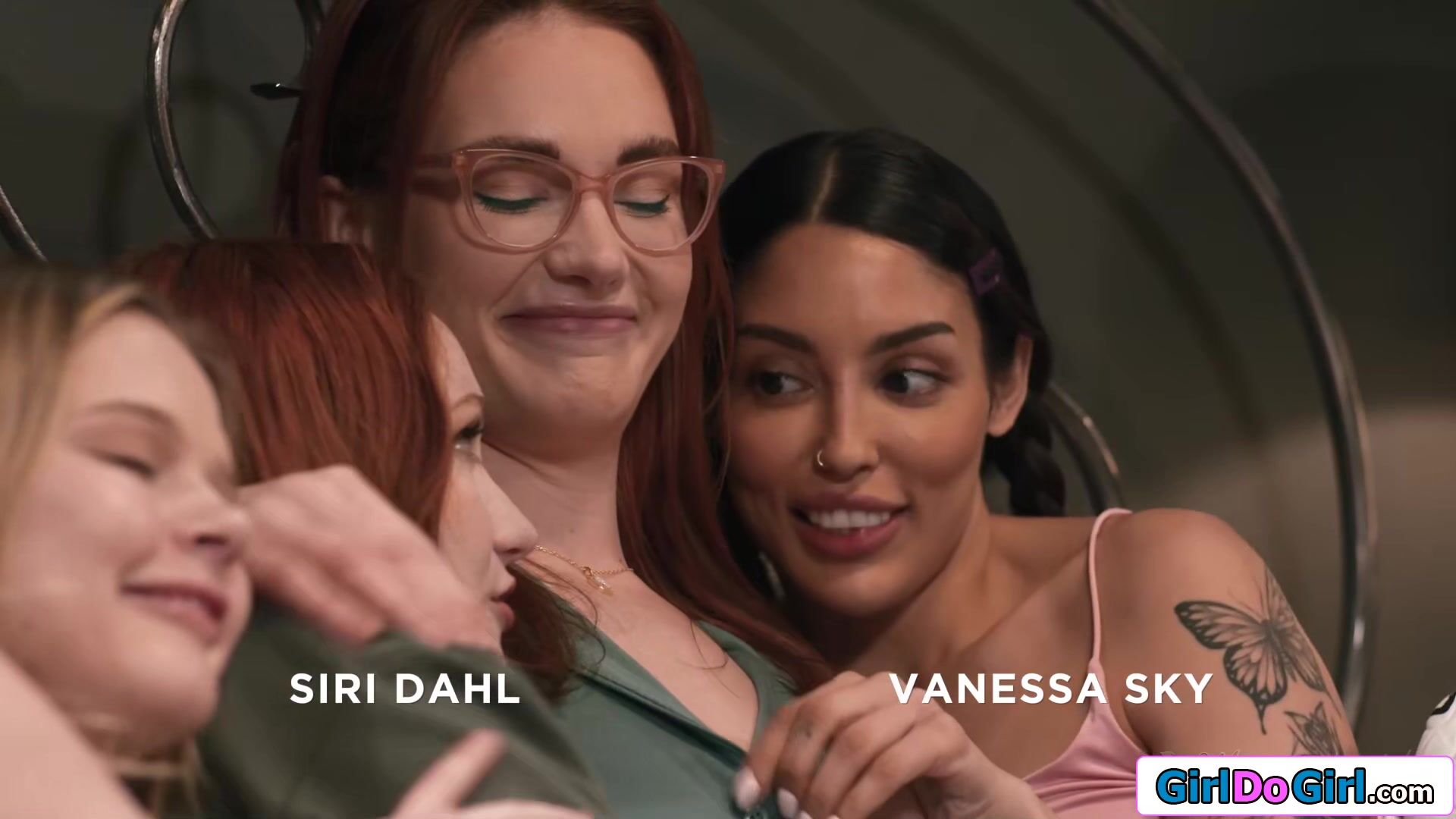Big tits stepmom Siri Dahl has her stepdaughter Scarlet Skies and her bffs Coco Lovelock and Vanessa Sky joining her in her bed.The teens are lusting for pussy and they seduce the busty milf with kisses.The small tits babes facesit and get rimmed