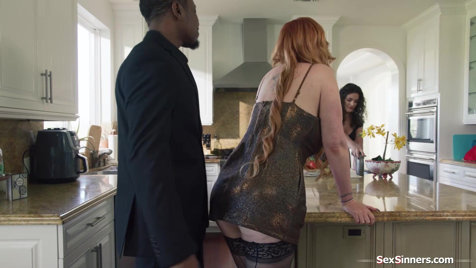 Victoria Voxxx and her husband have a free use agreement with busty Lauren Phillips.The ladies get to chit chat while the guy fingers and bangs the redhead milf.He licks and gets his bbc sucked and anal fucks her while the latina prepares dinner