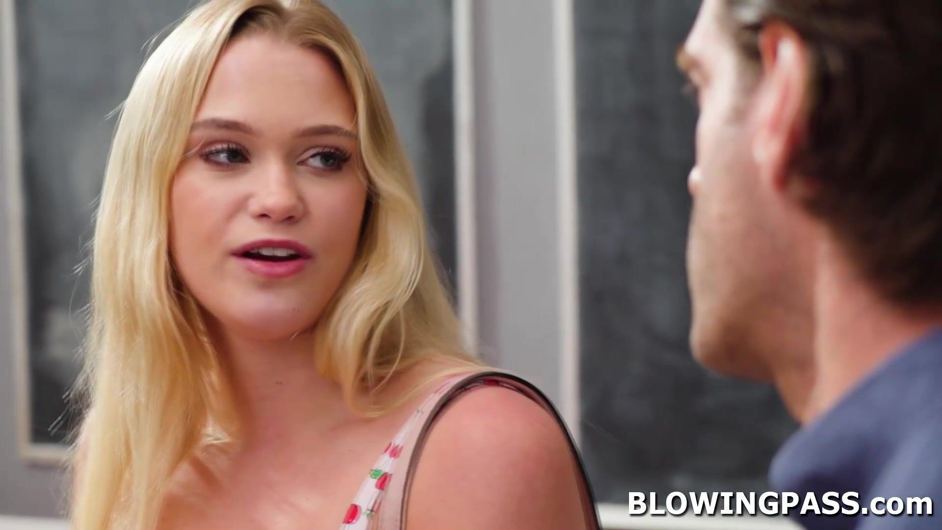 Chloe Rose visits her school after graduating to see her instructor again.The teen wants his big cock so bad that she is willing to give him blowjob in the classroom.The guy is eating her shaved pussy before face fucking and throat fucking her.