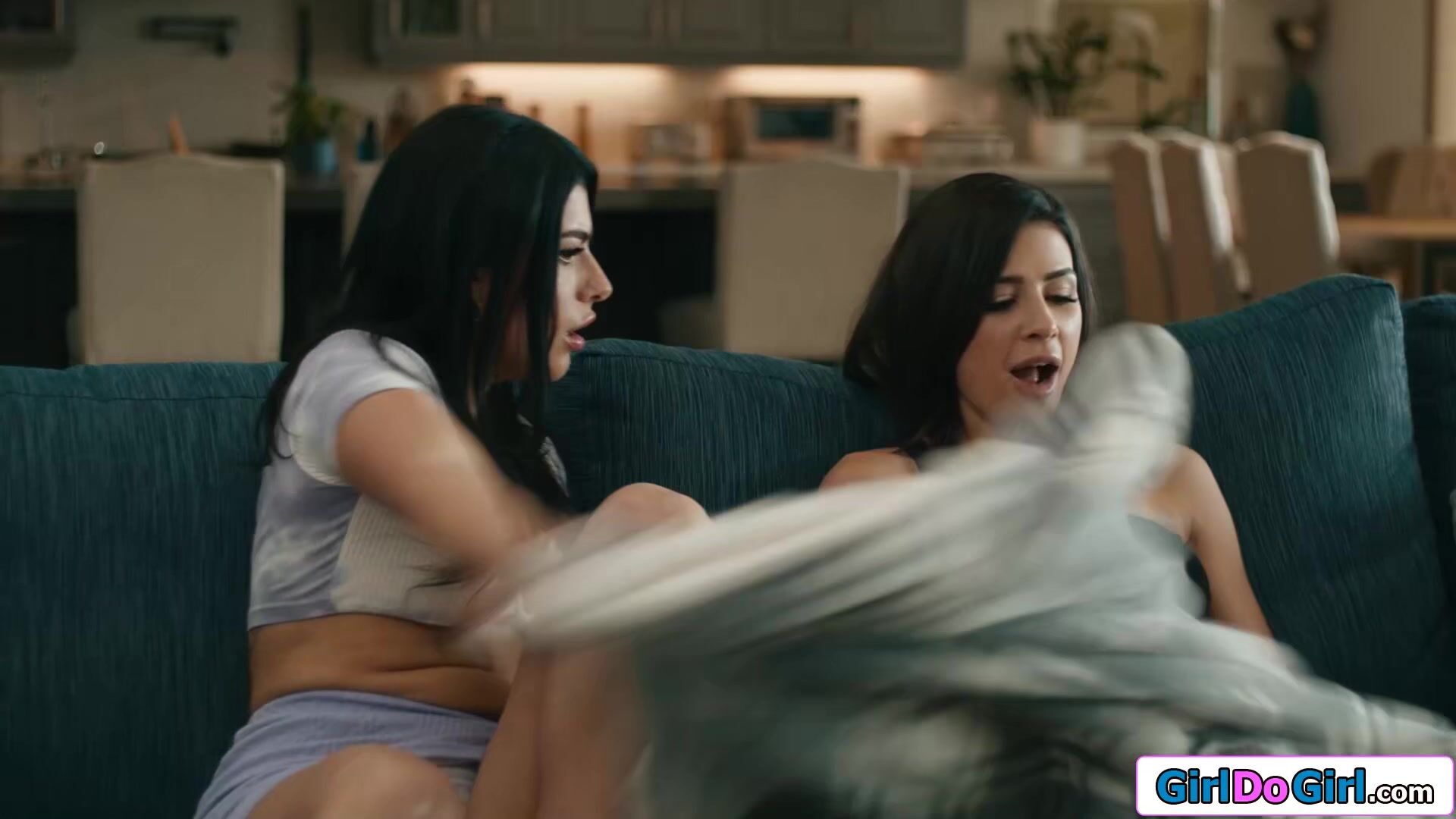 Petite Kylie Rocket is masturbating on a steamy tvseries when her roommate Gal Ritchie shows up and joins.Kylie secretly masturbates but is caught by Gal.The lesbians kiss and the small tit brunette licks pussy and is rimmed.Shes rubber for an orgasm