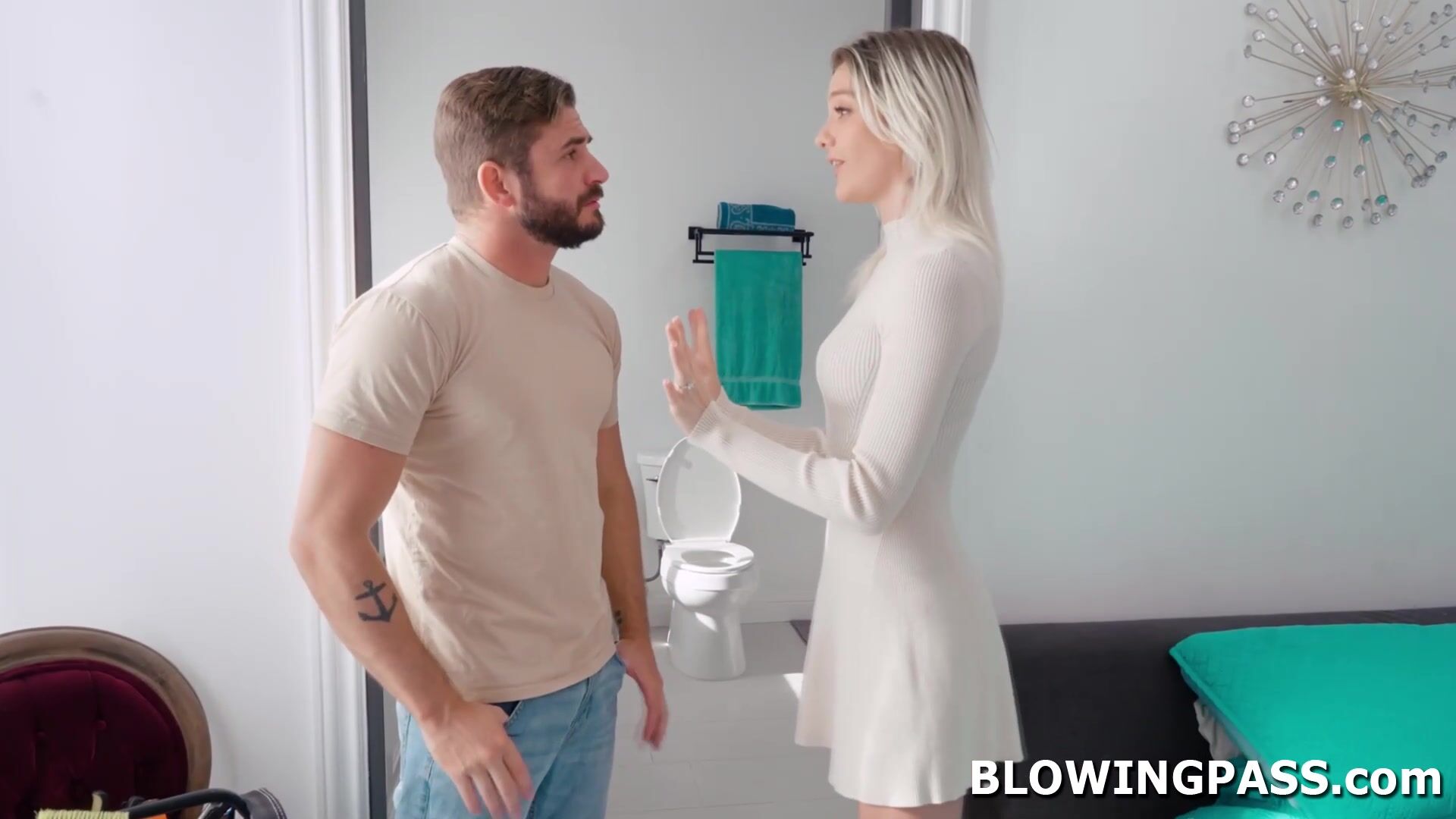 Wife Kenna James is not satisfied with her husband anymore.The big tits milf flirts with the handyman,she is willing to suck his big cock as tip.The guy kisses the blonde babe then sucks her big tits,licks and fingers her pussy then fucks her face.