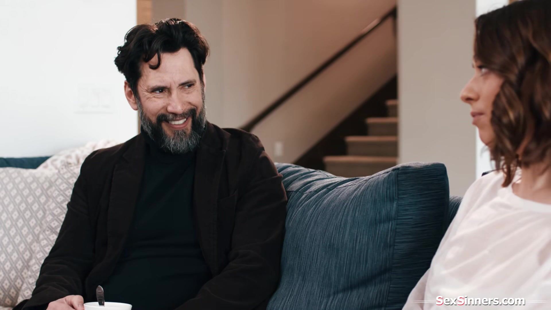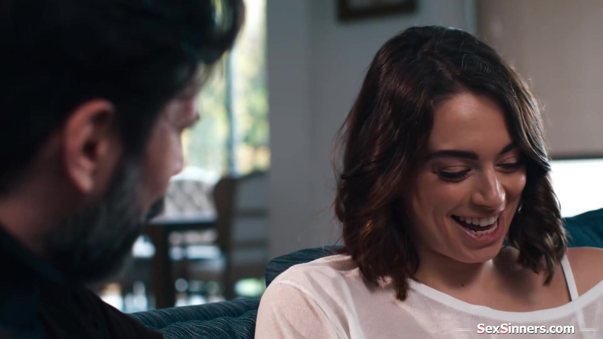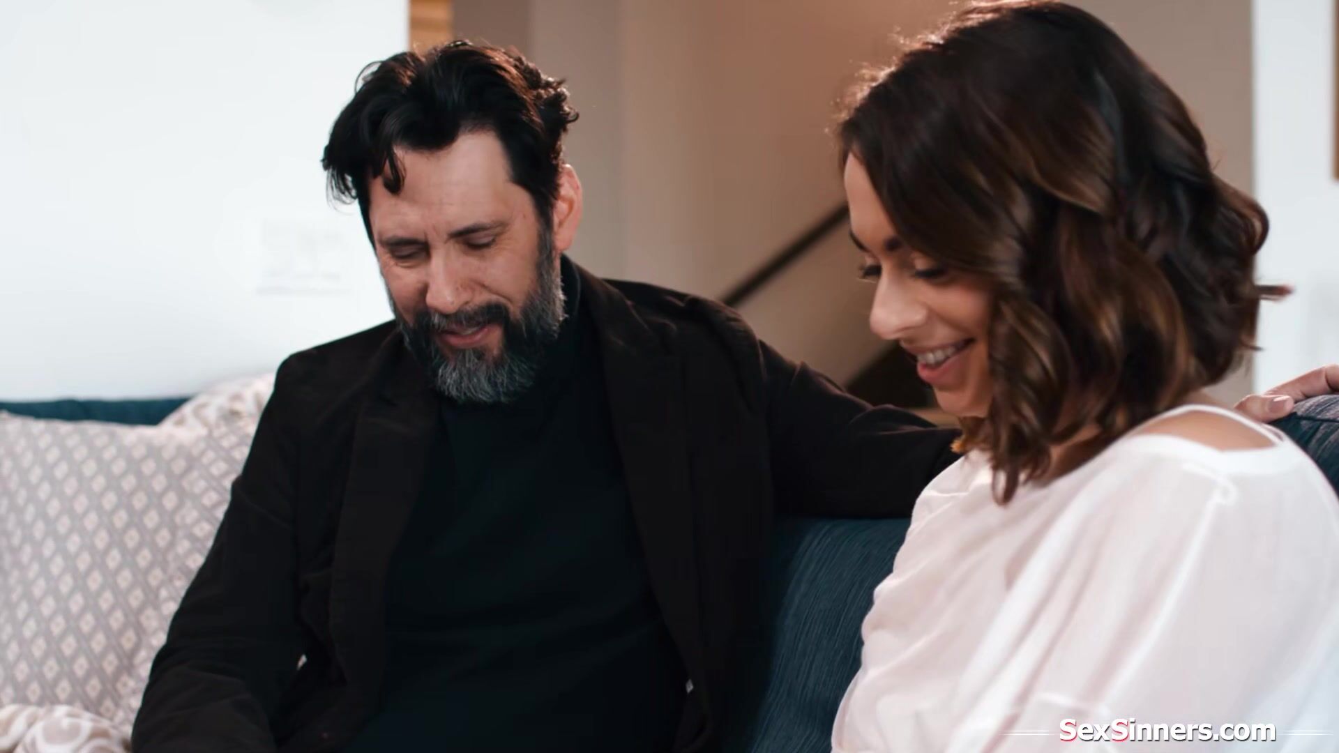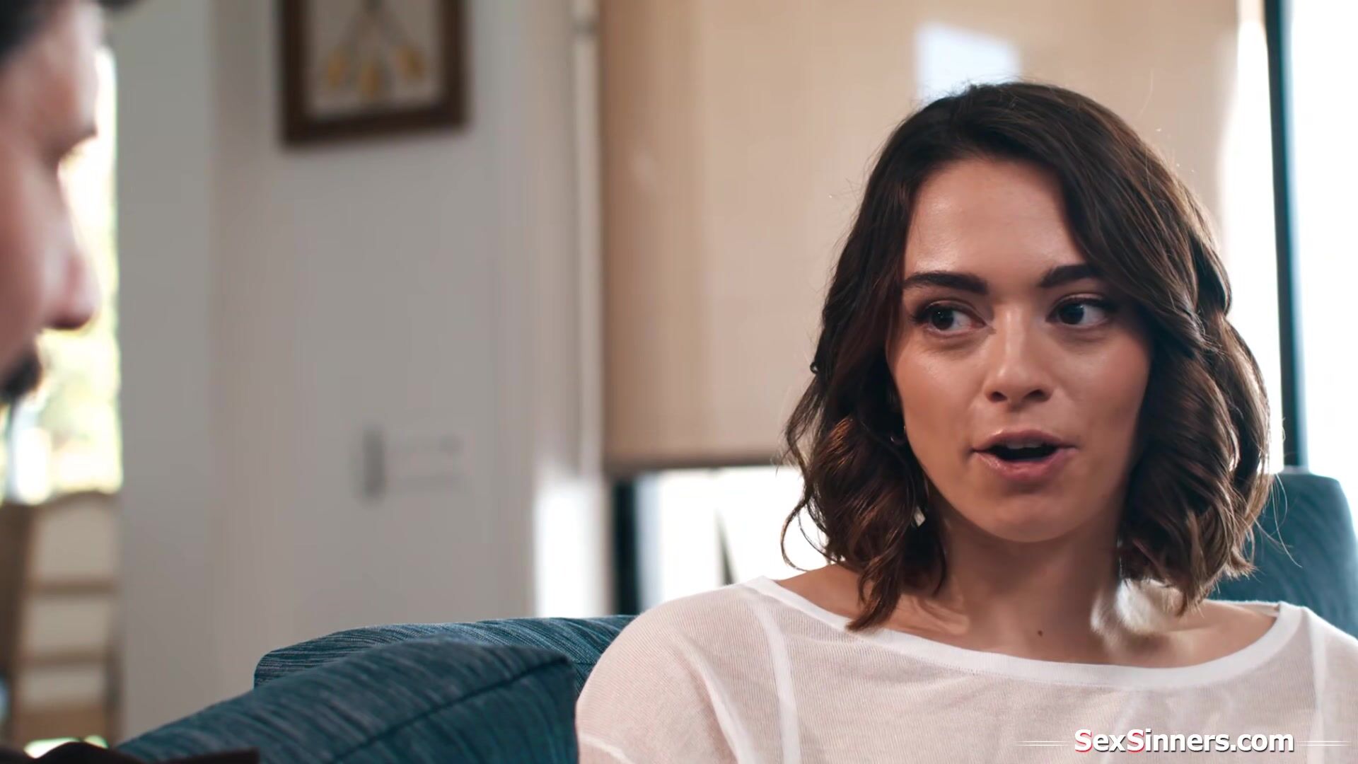 Sophia Burns gets a surprise visit from former bffs husband for a talk.The issues he has make them reconnect and they cant hold back anymore.The small tits brunette is masturbated and licked.She puts his cock and balls in her mouth before riding him