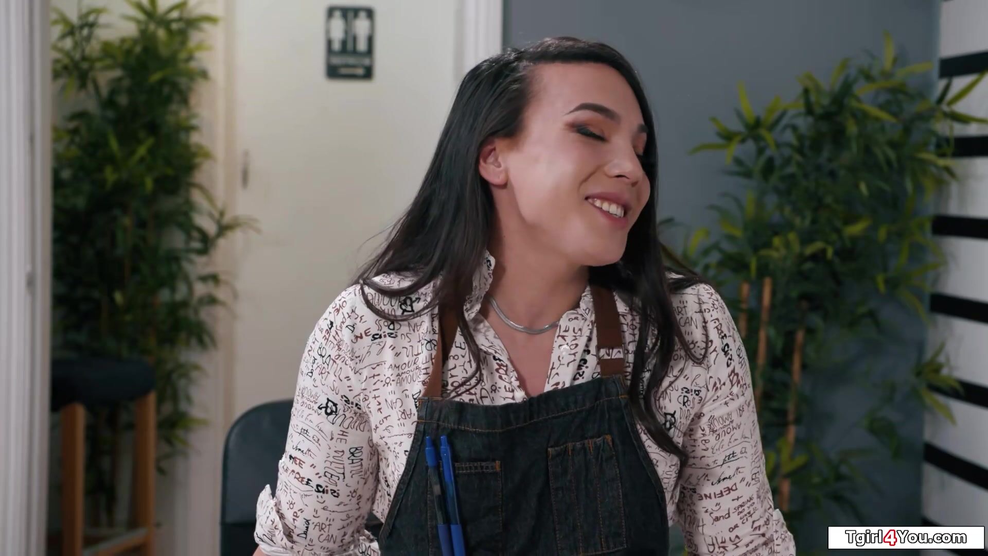 Asian shemale Kasey Kei takes out the delivery guys big cock and deepthroats.The small tits brunette tgirl gives a double handjob and gets her tranny dick sucked off.The sexy trans bends over to get her ass rimmed and doggystyle anal barebacked