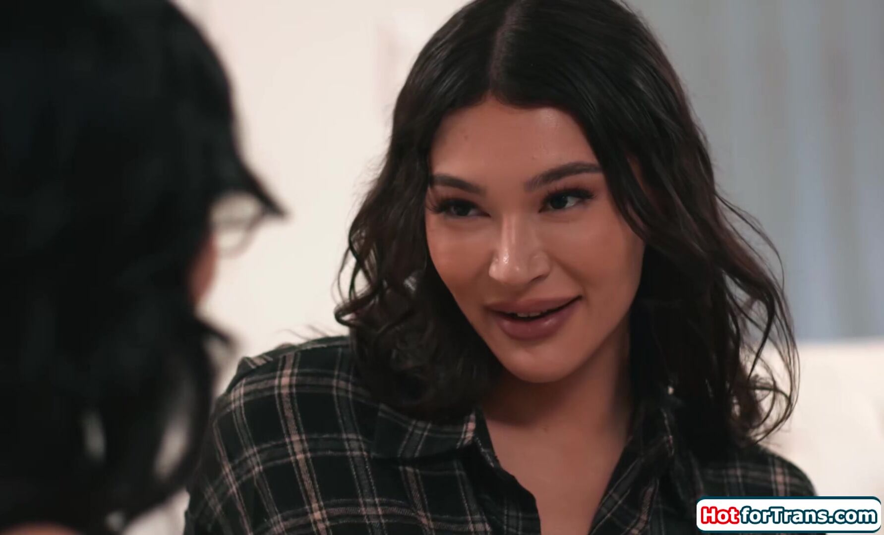 Big cock shemale contractor Andylynn Payne notices her big tits client Cami Strella been checking her out.The tgirl kisses her and they suck boobs.The busty tranny tittyfucks the latina and gets sucked off.The trans licks her pussy and bangs her