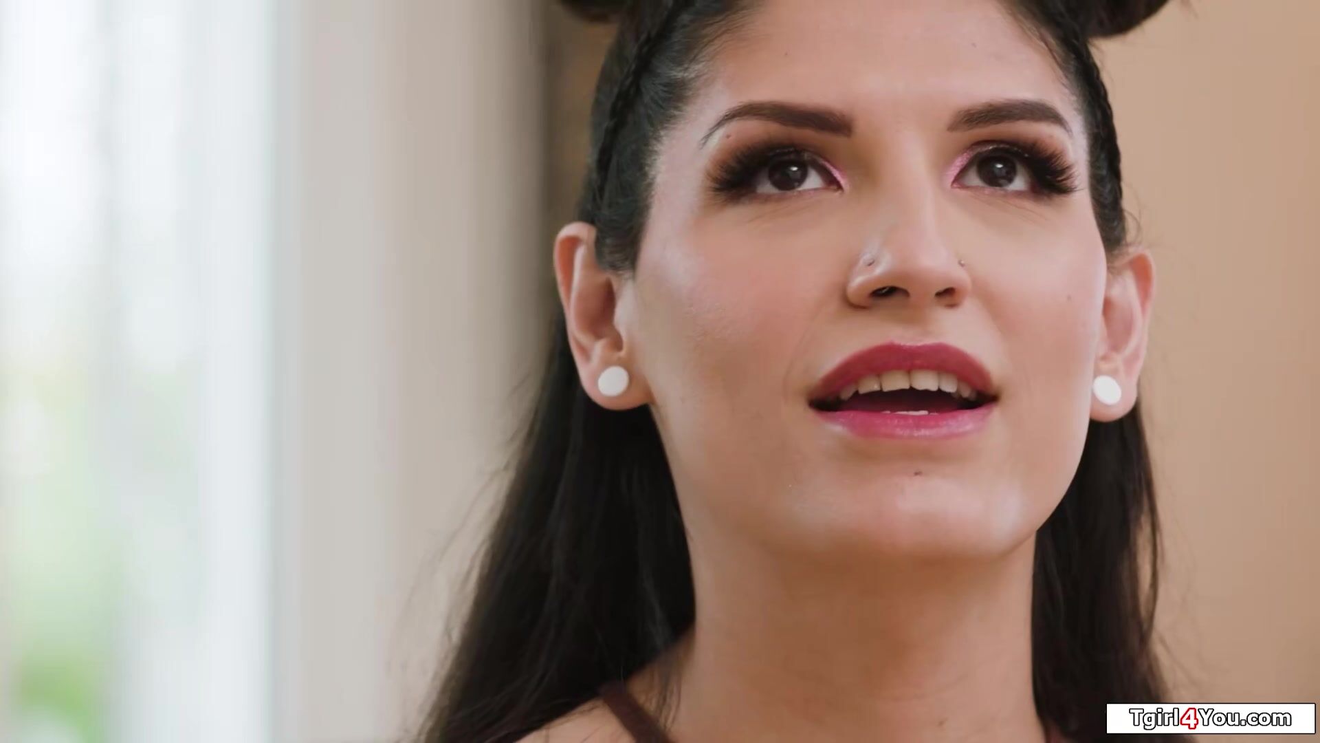 Description: Tgirl stepdaughter Zariah Aura licks her stepmom Sophia Lockes shaved pussy.The busty milf sucks the shemales big cock when her wife comes home.Hiding under a blanket the tranny gives oral.Finally alone again the latin trans fucks the tattooed cougar