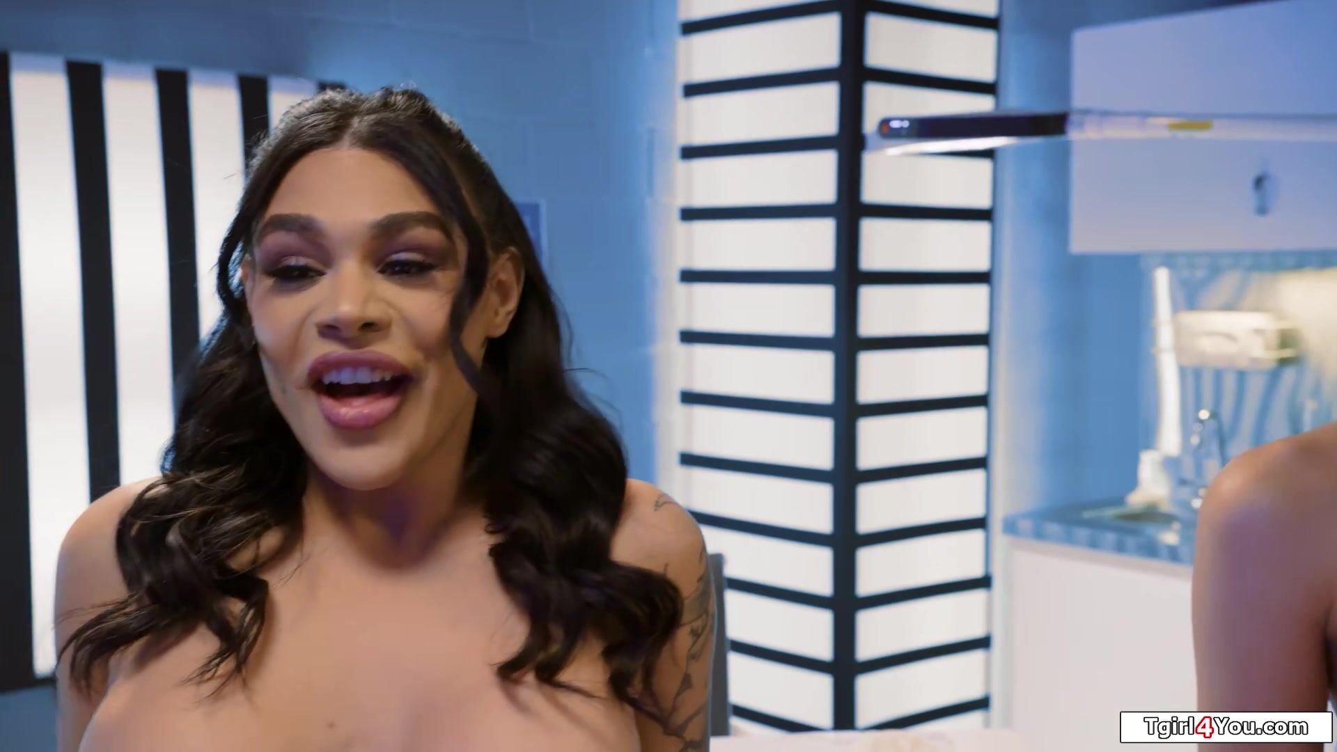 Scientists Siri Dahl,Leana Lovings and Avery Jane created three shemale sexdolls Eva Maxim,Khloe Kay and Zariah Aura.The big cock tgirl licks the busty milf while the latin trans is sucked off.The babe is fucked while the trannies bareback each other